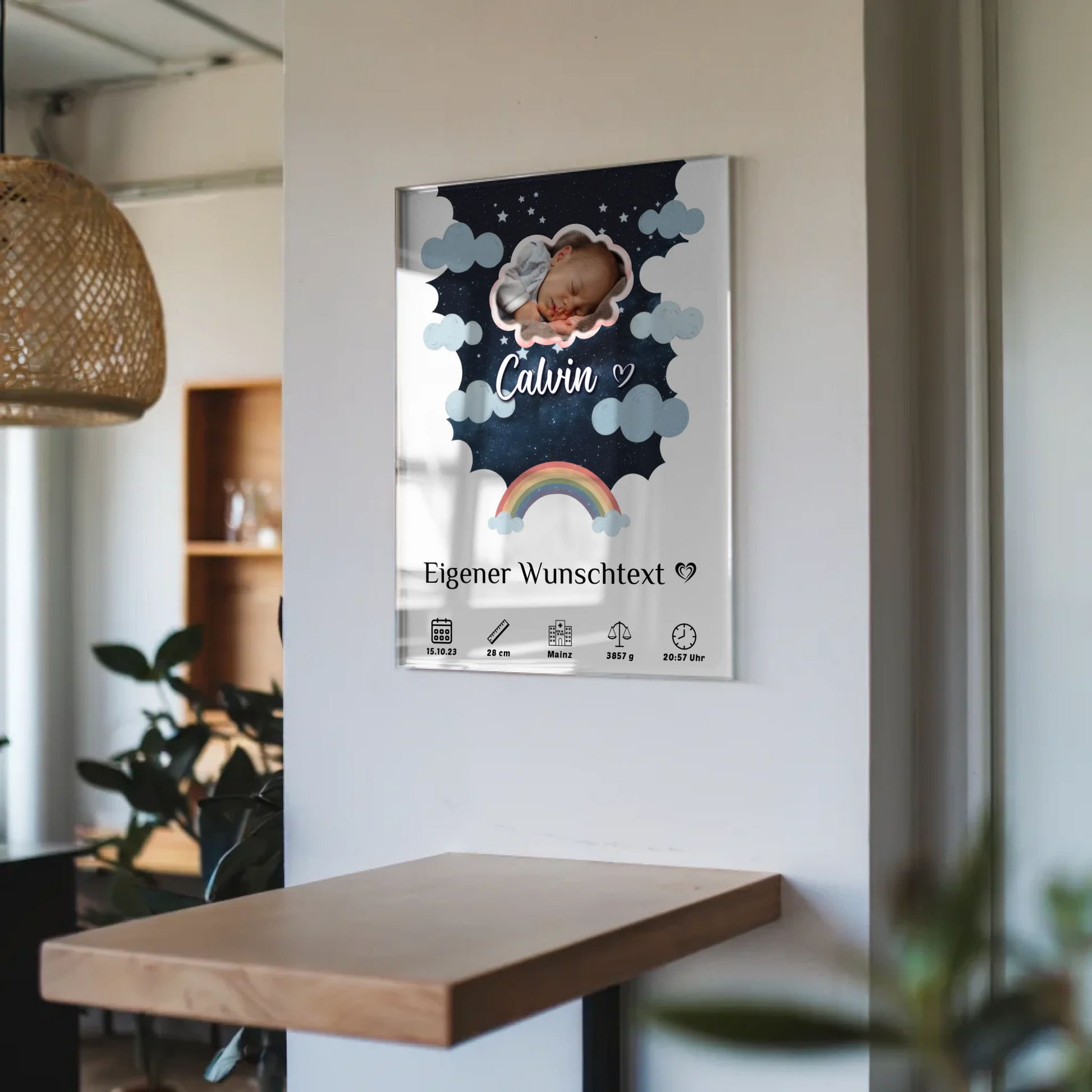 Geburt Bild Acrylglas Foto Wolke für Mädchen Jungen – Das perfekte personalisierte Geschenk zur Geburt