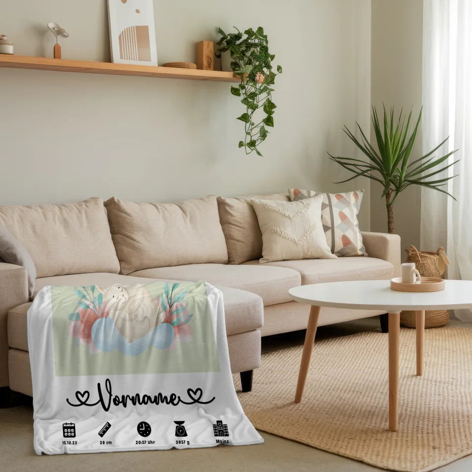 Geburtsdecke personalisiert mit Namen Grünweiß Hasen Mama