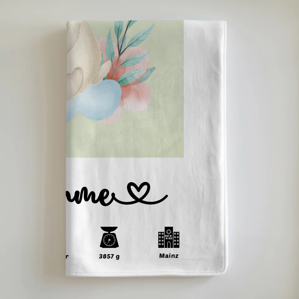 Suchst du nach einem einzigartigen Geschenk zur Geburt oder zum Geburtstag? Die Geburtsdecke personalisiert mit Namen Grünweiß Hasen Mama ist die perfekte Wahl! Diese liebevoll gestaltete Decke bietet nicht nur einen kuscheligen Platz für dein Baby, sondern wird auch mit den wichtigsten Geburtsdaten wie Gewicht, Größe, Uhrzeit und Datum individualisiert. So wird sie zum persönlichen Andenken an diesen besonderen Moment.