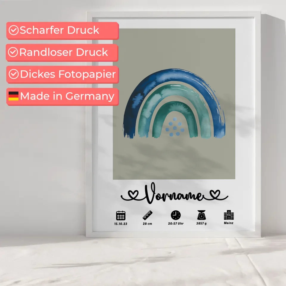 Entdecke unser einzigartiges Geburtsposter Personalisiert mit Geburtsdaten Grau für Kinderzimmer, das ein herzliches Geschenk zur Geburt oder zum Geburtstag deines kleinen Schatzes darstellt. Dieses stilvolle Poster ist nicht nur ein schöner Blickfang im Kinderzimmer, sondern auch eine liebevolle Erinnerung an den besonderen Tag. Du hast die Möglichkeit, individuelle Geburtsdaten wie Gewicht, Größe, Uhrzeit und Datum sowie den Namen deines Kindes einzufügen. Wähle ein passendes Hintergrundbild, das perfekt zur Einrichtung des Kinderzimmers passt. Mit dem Geburtsposter Personalisiert sorgst du für leuchtende Augen und schaffst ein wunderschönes Andenken, das ein Leben lang hält. Perfekt geeignet als Geschenk zur Geburt oder für den Geburtstag deines kleinen Lieblings. Etabliere mit unserem stilvollen Design und den persönlichen Akzenten eine ganz besondere Atmosphäre im Kinderzimmer und mache dieses Geschenk zu einem unvergesslichen Erlebnis.