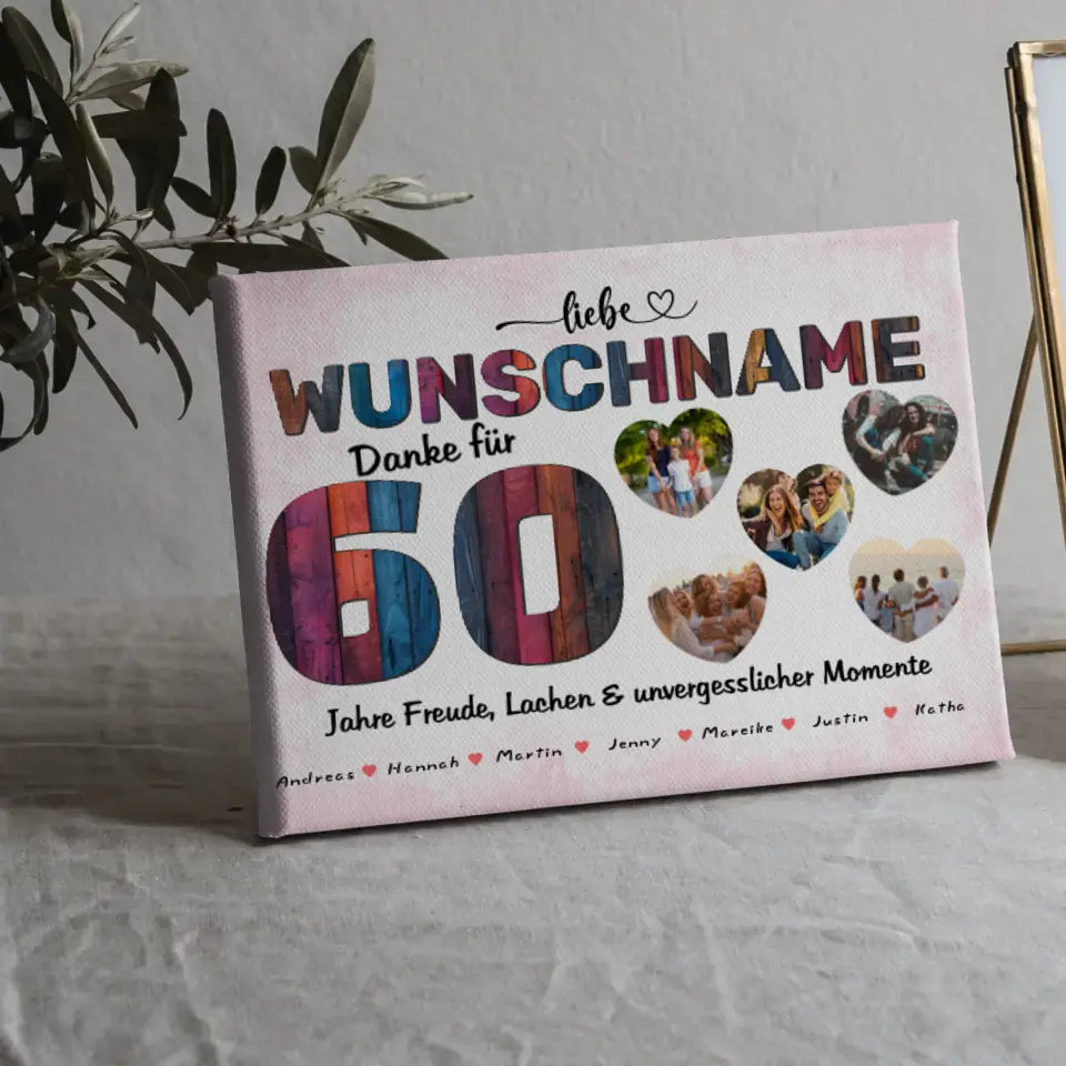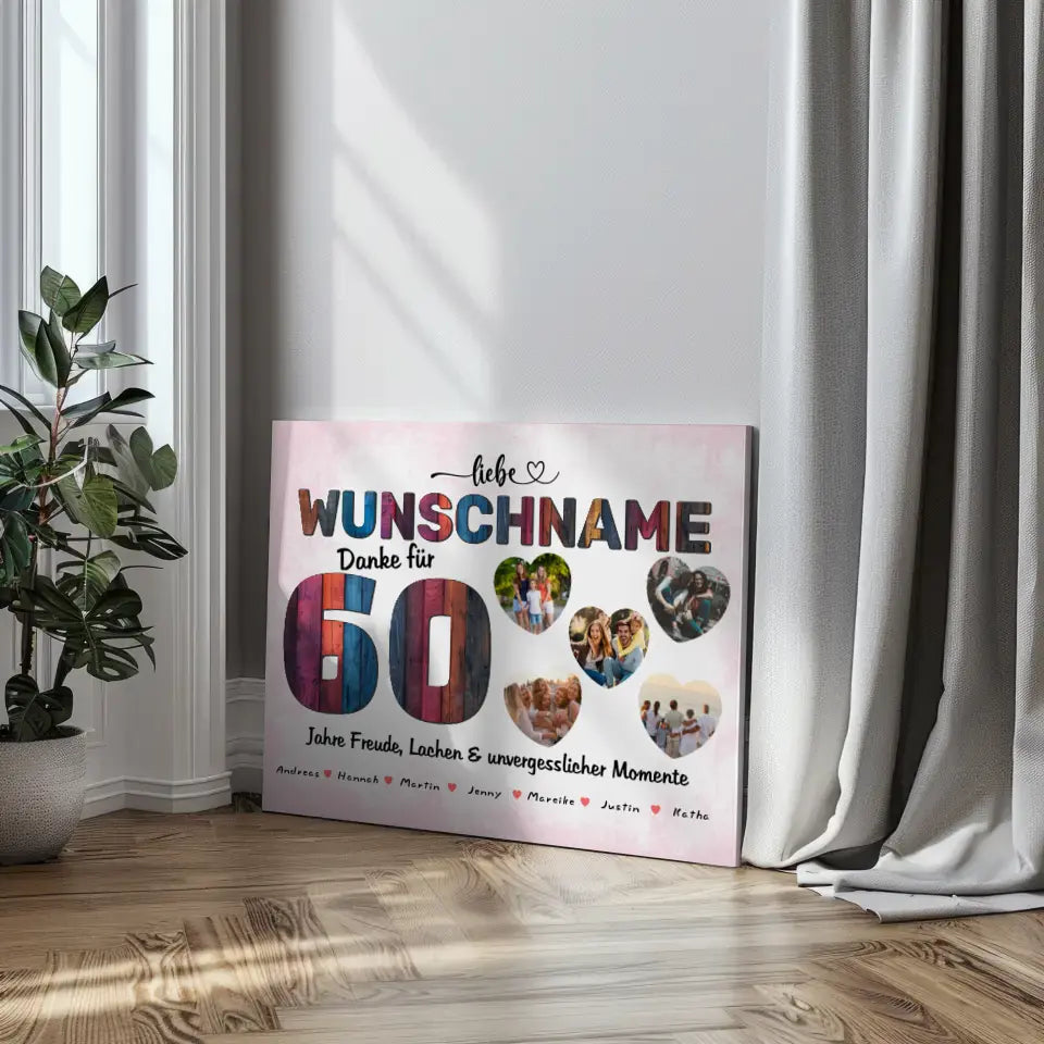 Unsere Geburtstags Leinwand für Schwester 60 Geburstag Bunter Holz Look