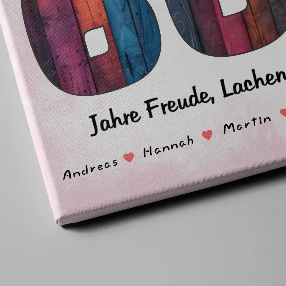 Du bist auf der Suche nach einem schönen tollen Geschenk? Dann ist Unsere Geburtstags Leinwand für Schwester 60 Geburstag Bunter Holz Look ein schickes personalisiertes Geschenk.