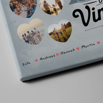 Du kannst bei diesem schönen Design 16 Fotos & 20 Namen ganz individuell personalisieren.