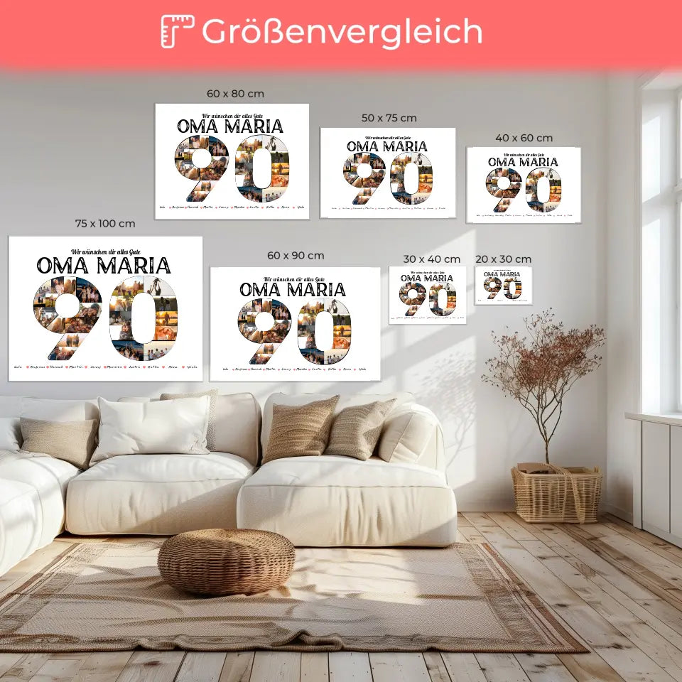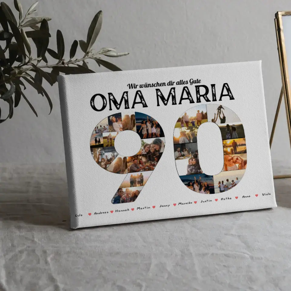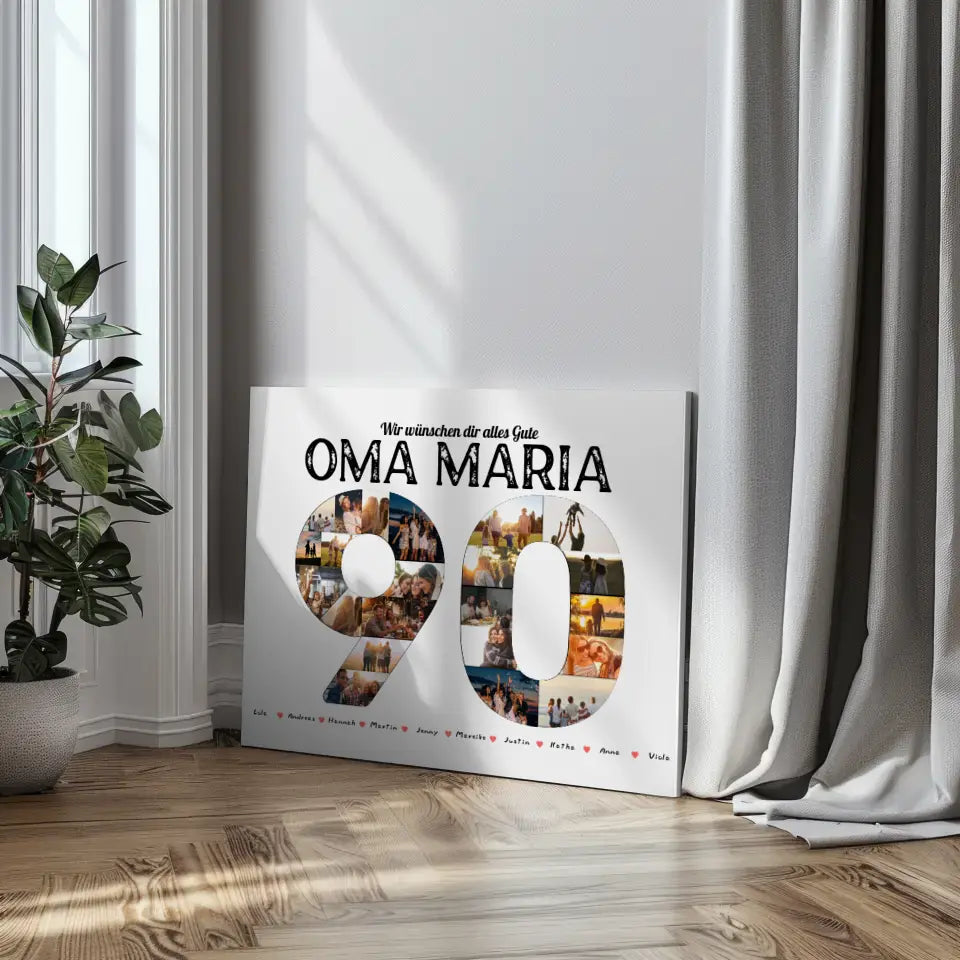 Geburtstags Leinwand personalisiert 90 Geburstag mit Name & Fotos in Zahlen
