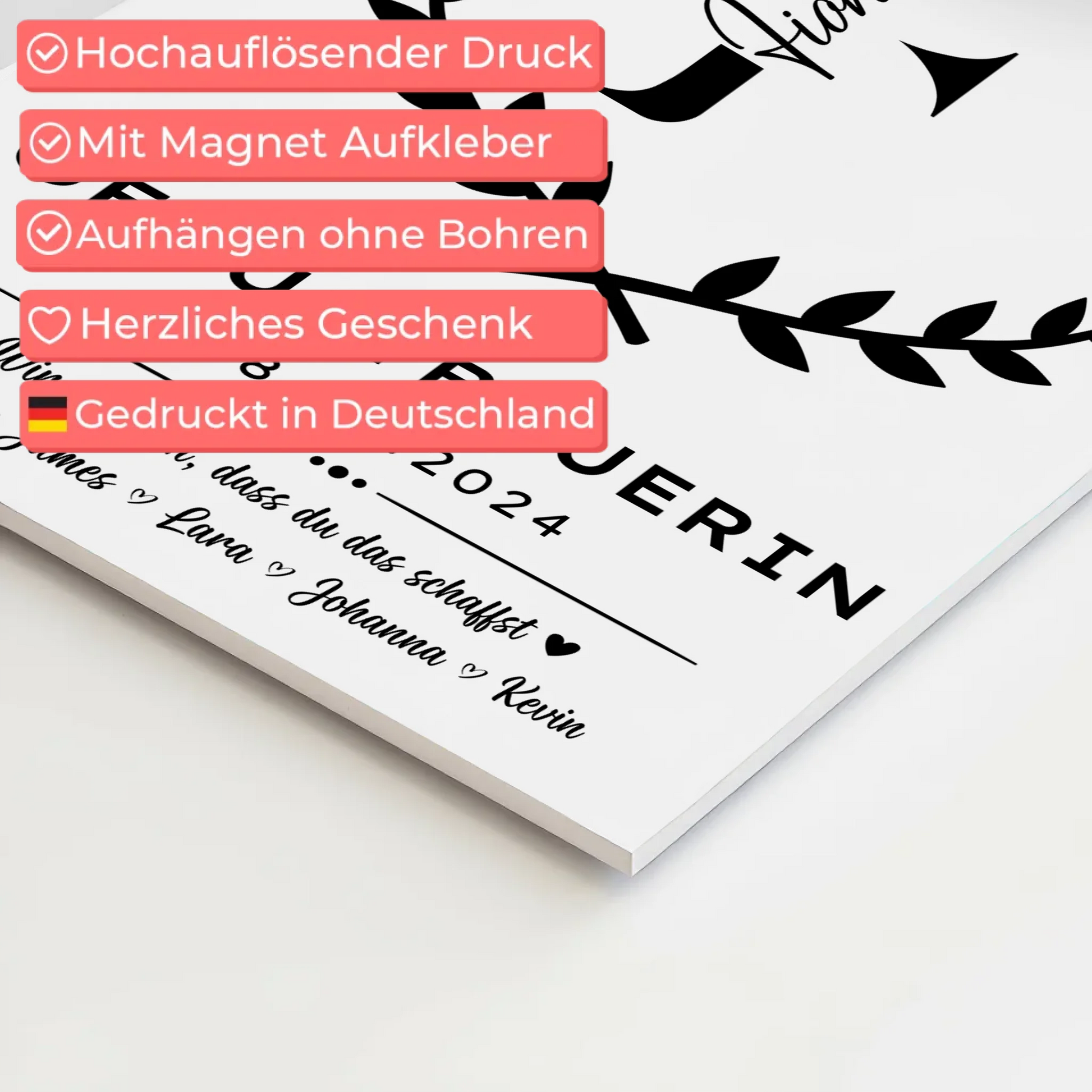 Suchst du nach einem einzigartigen und persönlichen Geschenk zum Abschluss deiner Ausbildung oder für eine Gerüstbauerin, die ihren Ausbildungsabschluss feiert? Unser Geschenk Abschluss Ausbildung Gerüstbauerin Fotoboard Magnet Poster ist die perfekte Wahl, um diesen besonderen Moment unvergesslich zu machen. Dieses individuell gestaltbare Fotoboard Magnet Poster kannst du ganz nach deinen Wünschen personalisieren – füge den Initial Buchstabe, das Datum sowie einen Wunschtext hinzu, um ein einzigartiges Andenken zu schaffen. Es eignet sich ideal als Ausbildungsabschluss Geschenk oder als Geschenk Zum Abschluss Ausbildung, um den Erfolg und die harte Arbeit zu würdigen. Das hochwertige Fotoboard Magnet Poster ist nicht nur dekorativ, sondern auch praktisch – es lässt sich leicht an magnetischen Flächen befestigen und ist somit perfekt für das Büro, die Werkstatt oder Zuhause. Überrasche deine Freundin, Kollegin oder dich selbst mit diesem besonderen Ausbildungsabschluss Geschenk, das sowohl motiviert als auch Erinnerungen schafft. Mit diesem personalisierten Geschenk zeigst du Wertschätzung und feierst den erfolgreichen Abschluss der Gerüstbauerin auf eine kreative und individuelle Weise.