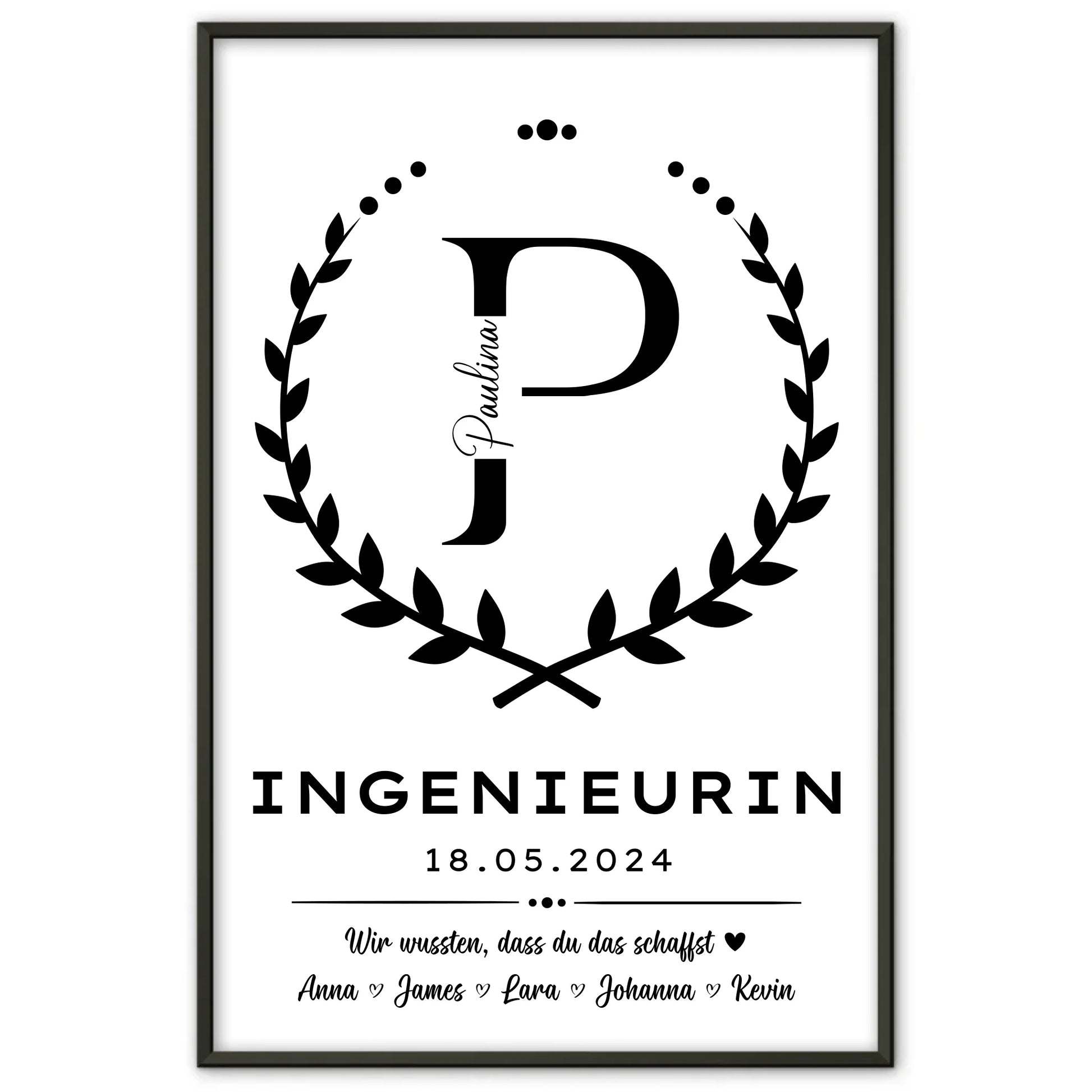 Bestelle jetzt dein personalisiertes Geschenk Abschluss Ausbildung Ingenieurin Poster und überrasche deine Liebsten mit einem besonderen Ausbildungsabschluss Geschenk, das lange in Erinnerung bleibt!