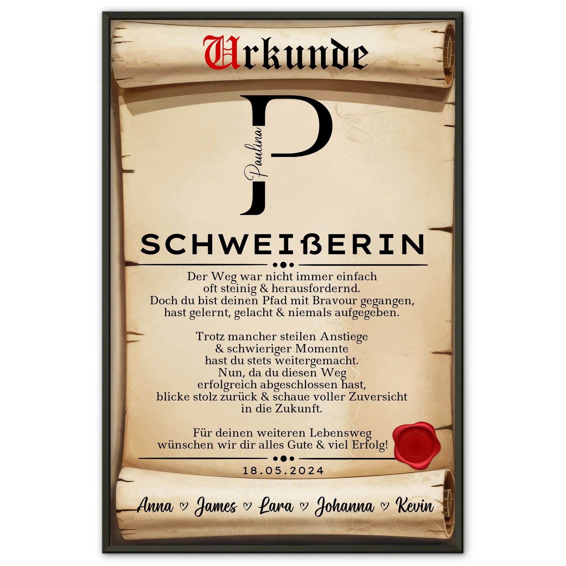 Geschenk Abschluss Ausbildung Schweißerin Poster Urkunde – Personalisiertes Ausbildungsabschluss Geschenk