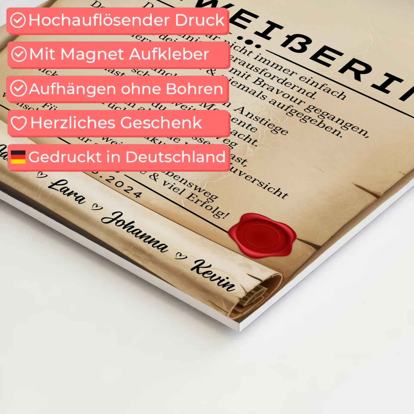 Geschenk Abschluss Ausbildung Schweißerin Urkunde Fotoboard Magnetisch – Das perfekte personalisierte Abschiedsgeschenk