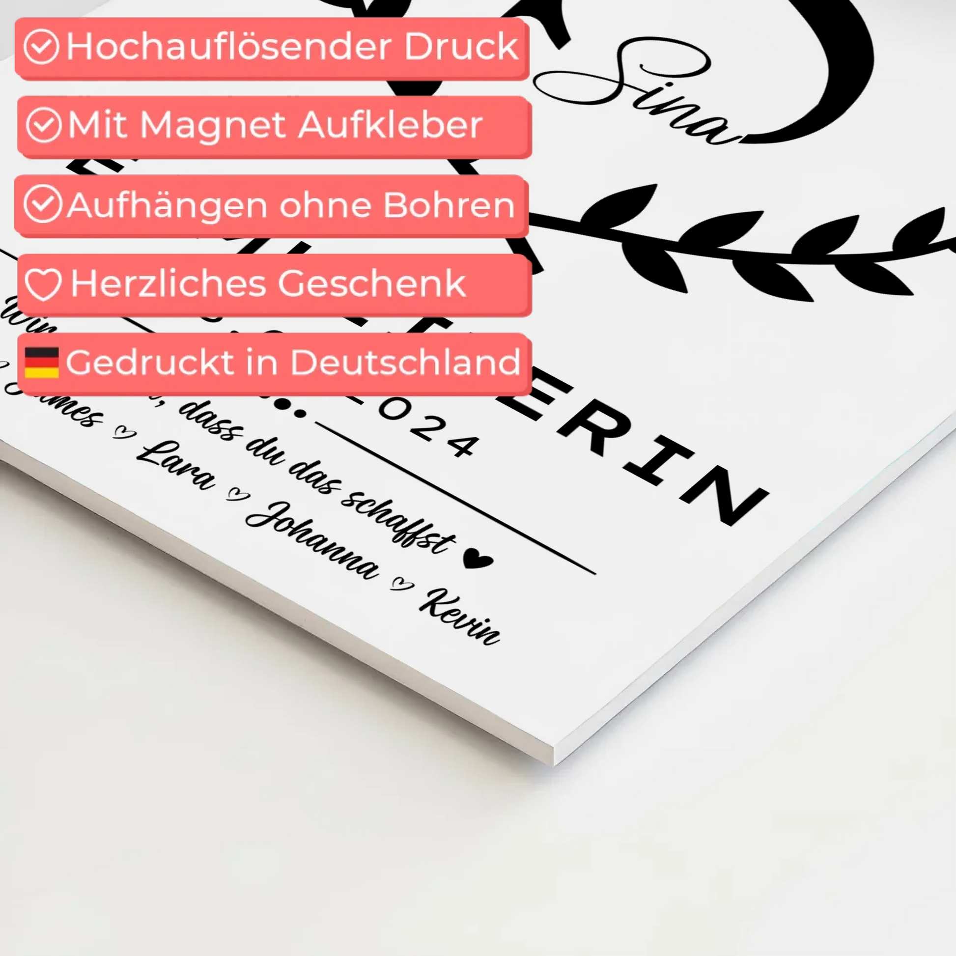 Personalisierte Geschenkidee für den Abschluss deiner Teamleiterin – Das Geschenk Abschluss Ausbildung Teamleiterin Fotoboard Magnet Poster