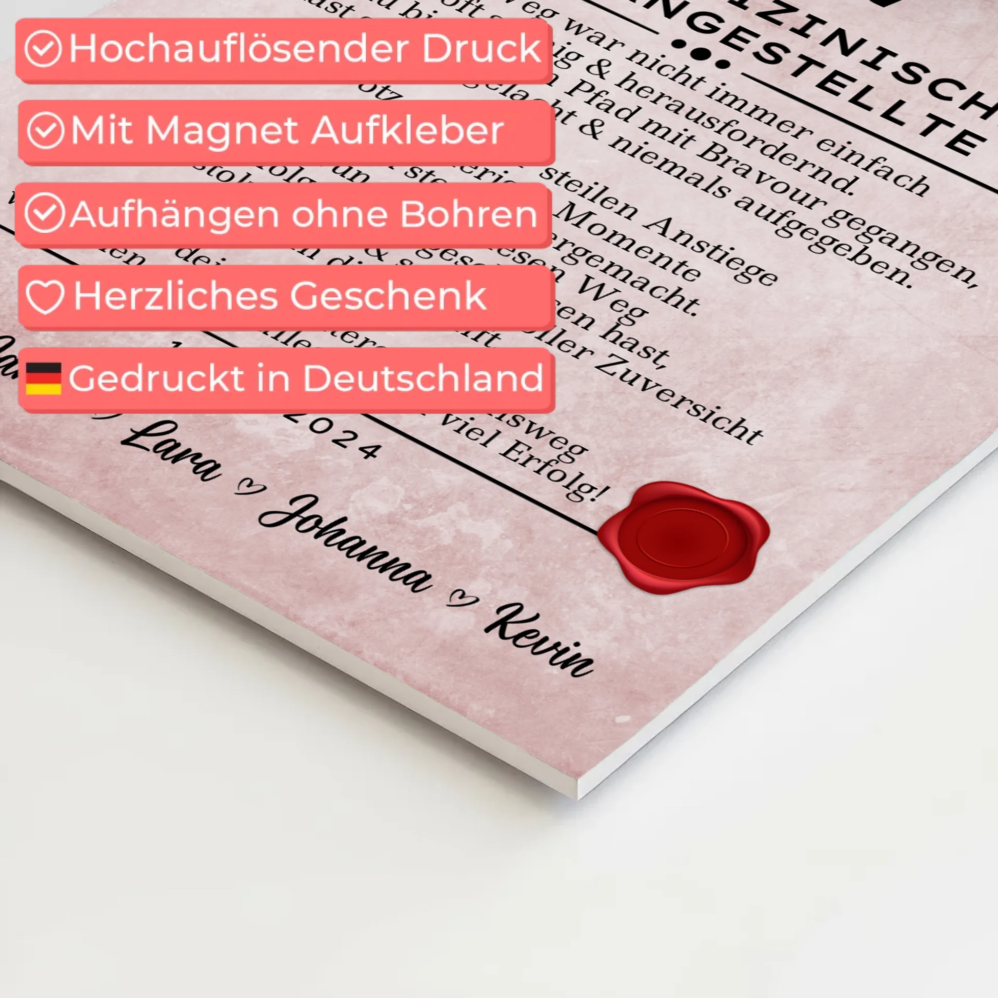 Geschenk Abschluss Ausbildung Tiermedizinische Fachangestellte Urkunde Fotoboard Magnetisch – Das perfekte personalisierte Ausbildungsabschluss Geschenk