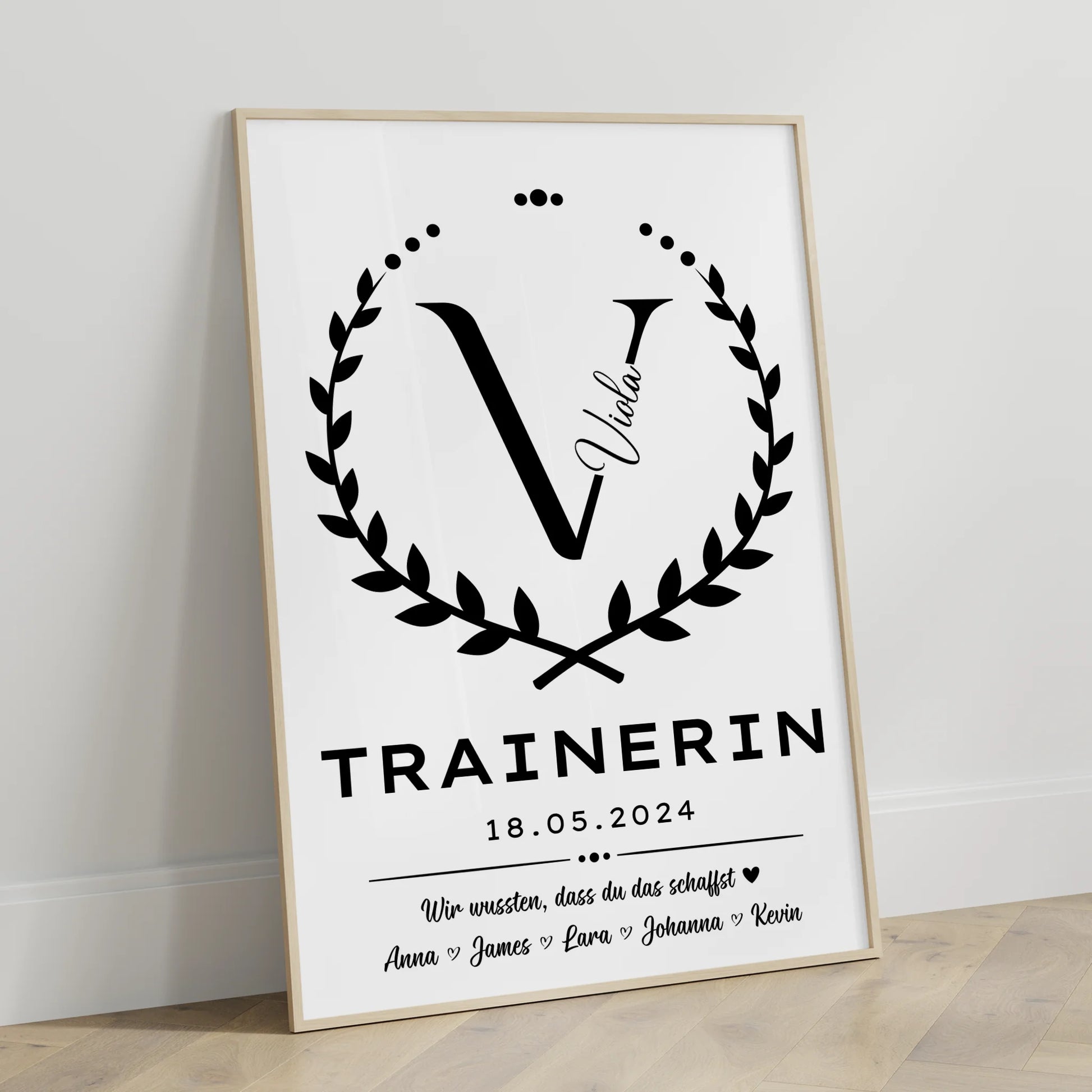 Geschenk Abschluss Ausbildung Trainerin Poster personalisiert