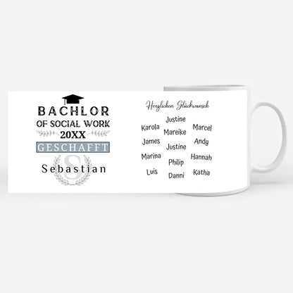 Geschenk Abschluss Tasse Bachlor of Social Work mit Name Studium
