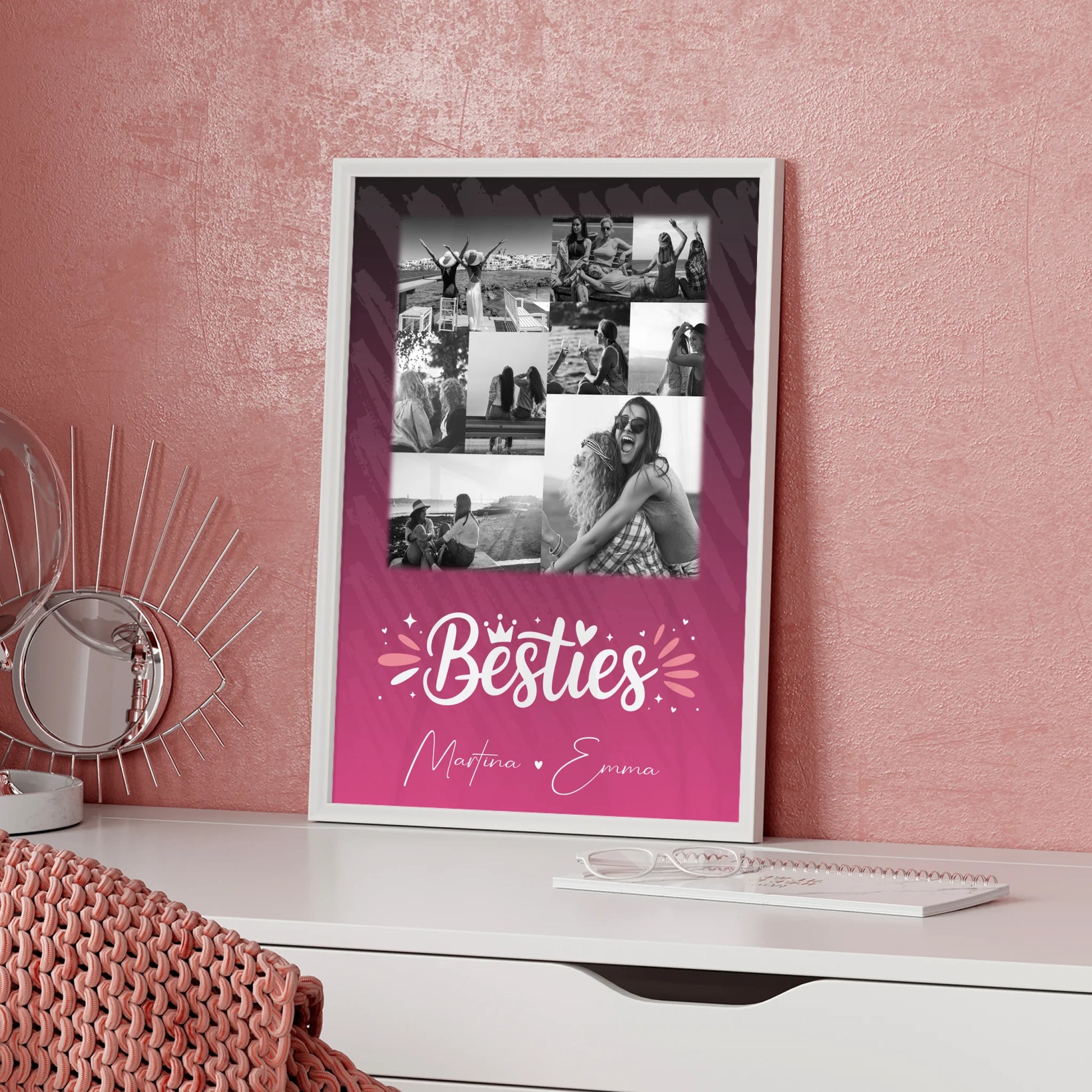 Überrasche deine beste Freundin zum Geburtstag mit einem Geschenk, das so einzigartig ist wie sie selbst. Ob als personalisiertes Poster für ihre Wand, eine Leinwand, eine Tasse für den morgendlichen Kaffee oder ein gemütliches Kissen – dieses Design ist ein echter Hingucker und eine tägliche Erinnerung an eure unzertrennliche Freundschaft. Bestelle jetzt und kreiere ein unvergessliches Geburtstagsgeschenk!