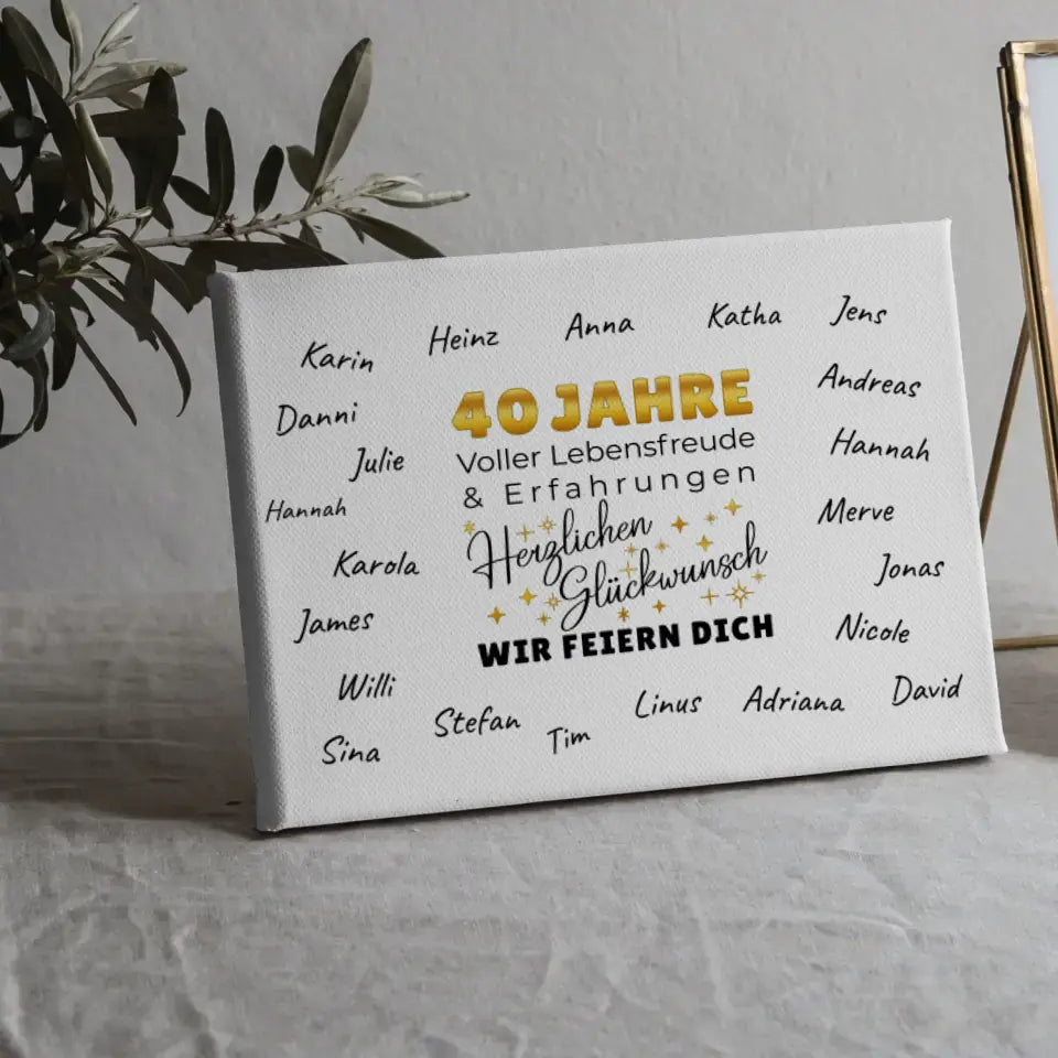 Geschenk Leinwand individuell 40 Geburtstag Lebensfreude mit Unterschriften