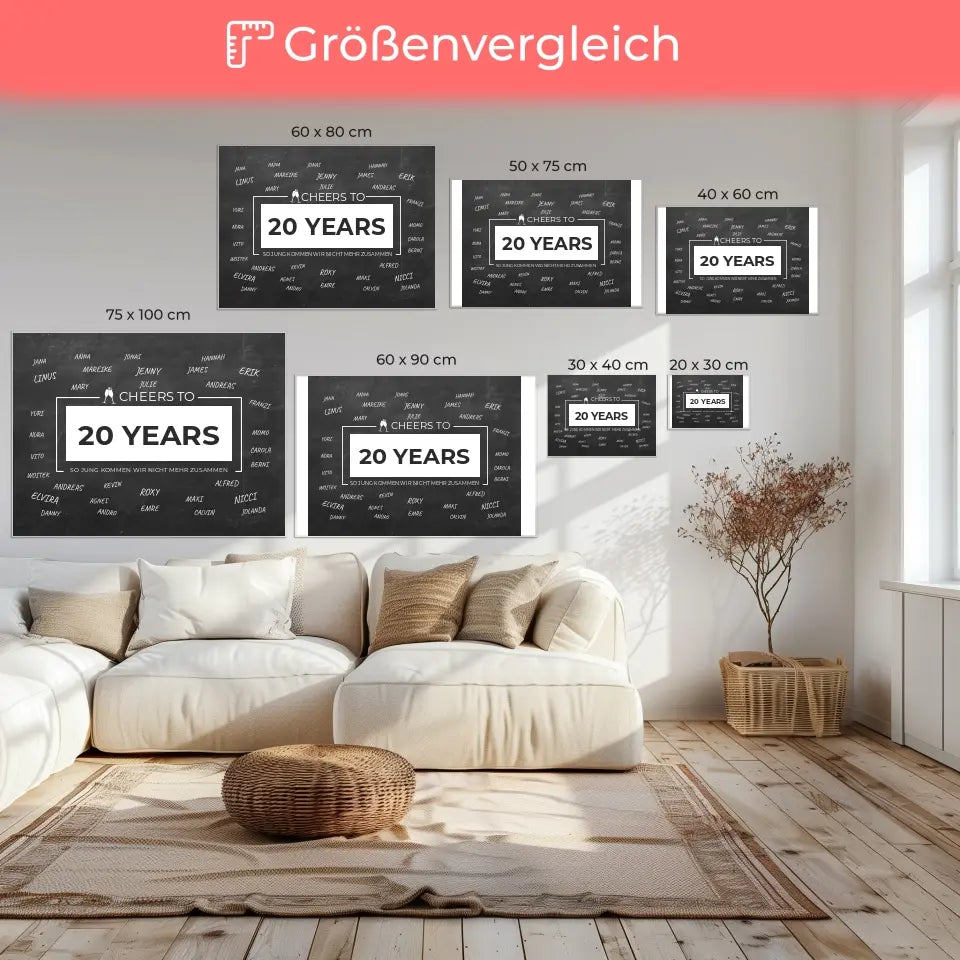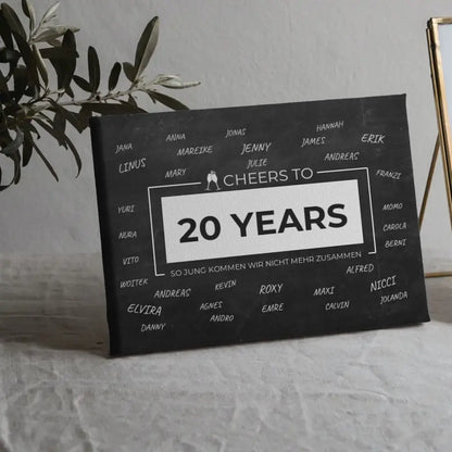 Unsere Geschenk Leinwand individuell Cheers To 20 Geburtstag mit Namen