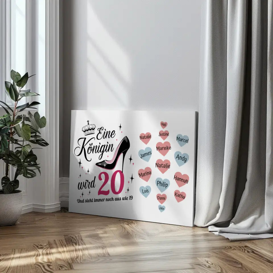 Geschenk Leinwand individuell Königin wird 20 Geburtstag mit 19 Namen