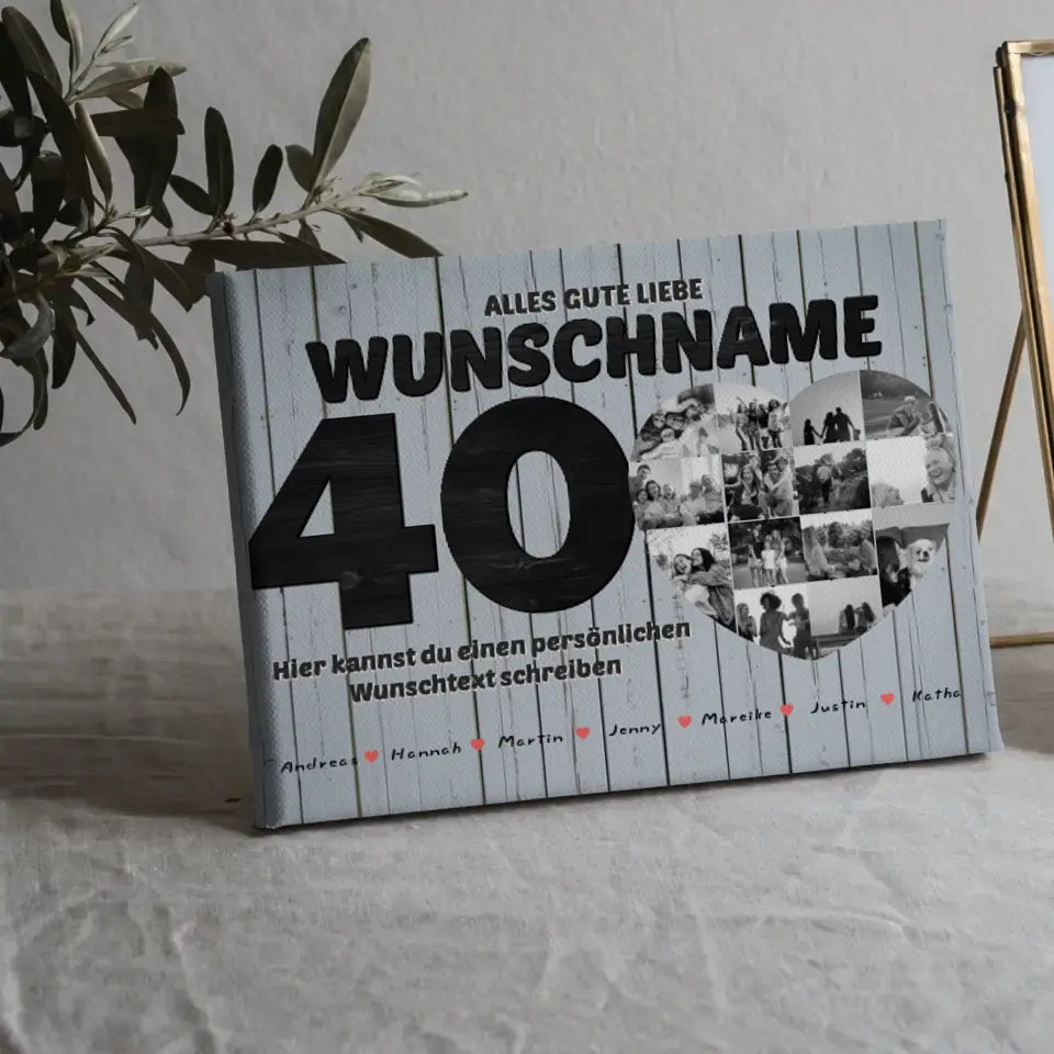Geschenk Leinwand personalisiert 40 Geburstag Bis 15 Namen für Schwester
