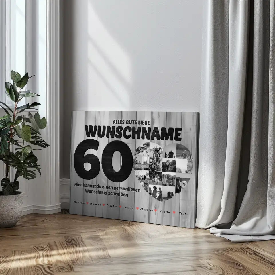 Geschenk Leinwand personalisiert 60 Geburstag Mit Namen Schwarz Weiß