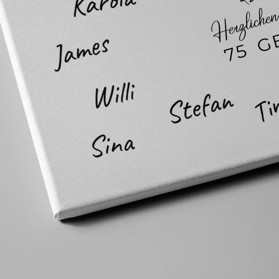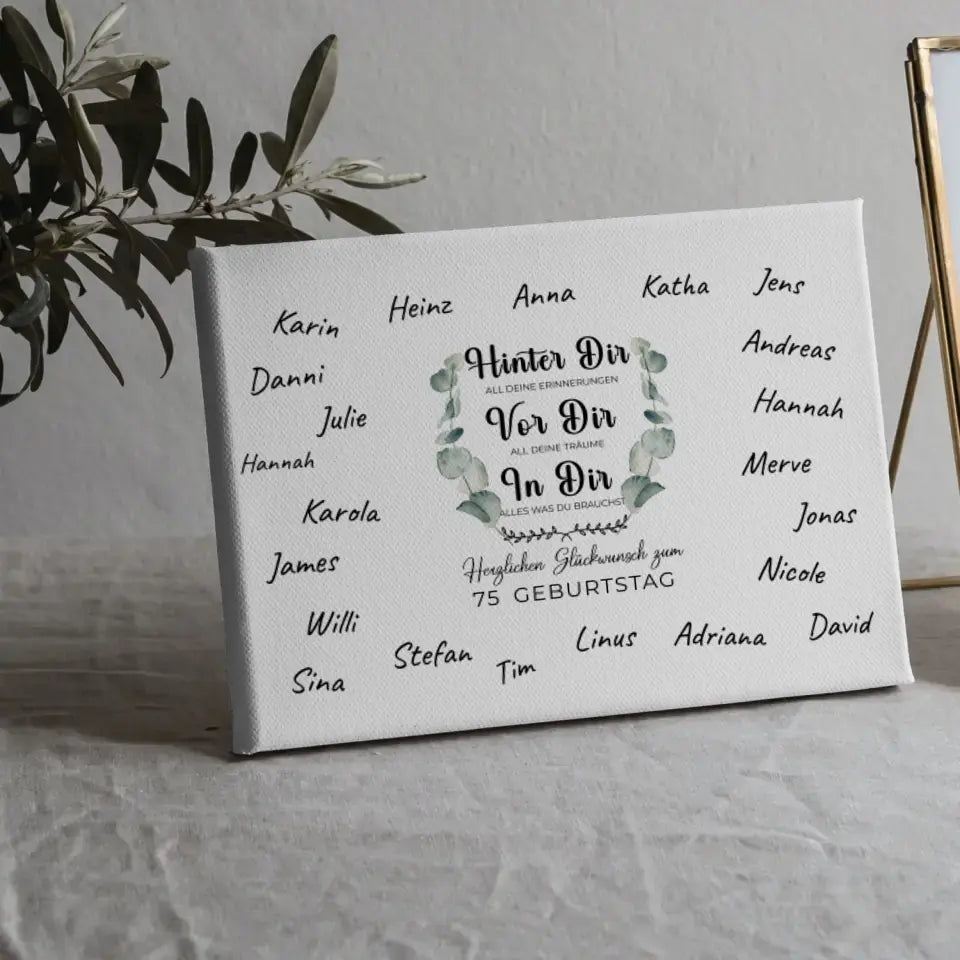 Geschenk Leinwand personalisiert 75 Geburtstag Hinter Dir mit Unterschriften
