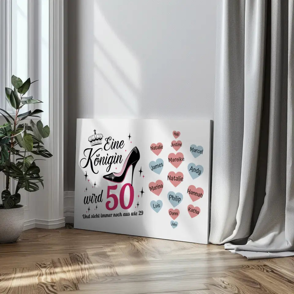 Geschenk Leinwand personalisiert Königin wird 50 Geburtstag mit 19 Namen