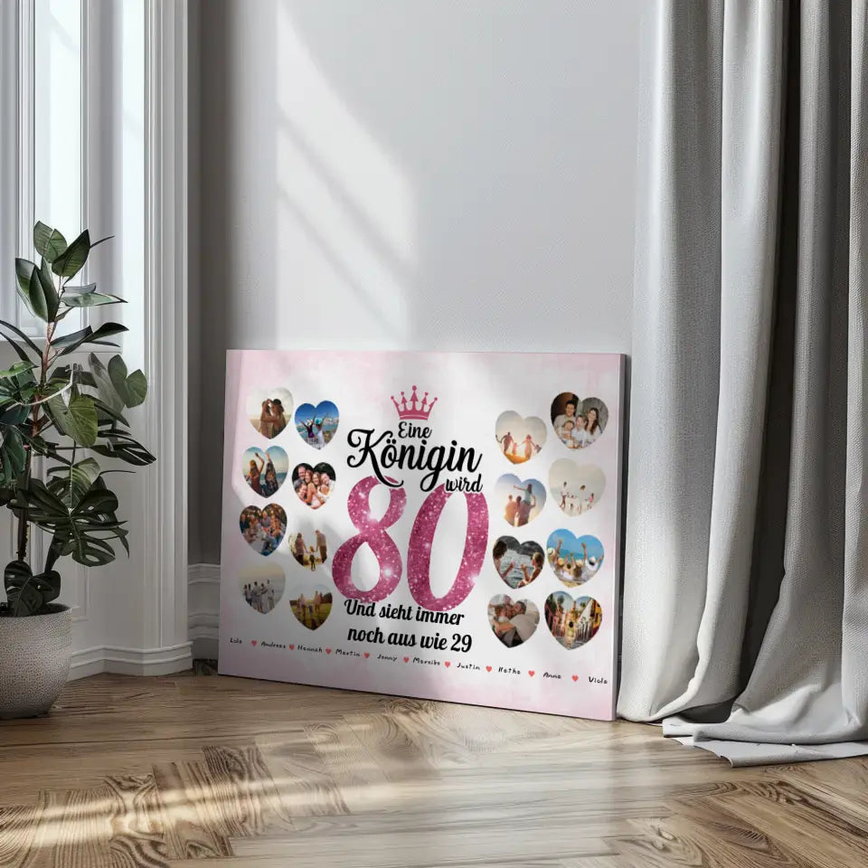 Geschenk Leinwand personalisiert Königin wird 80 Geburtstag mit Herz Fotos