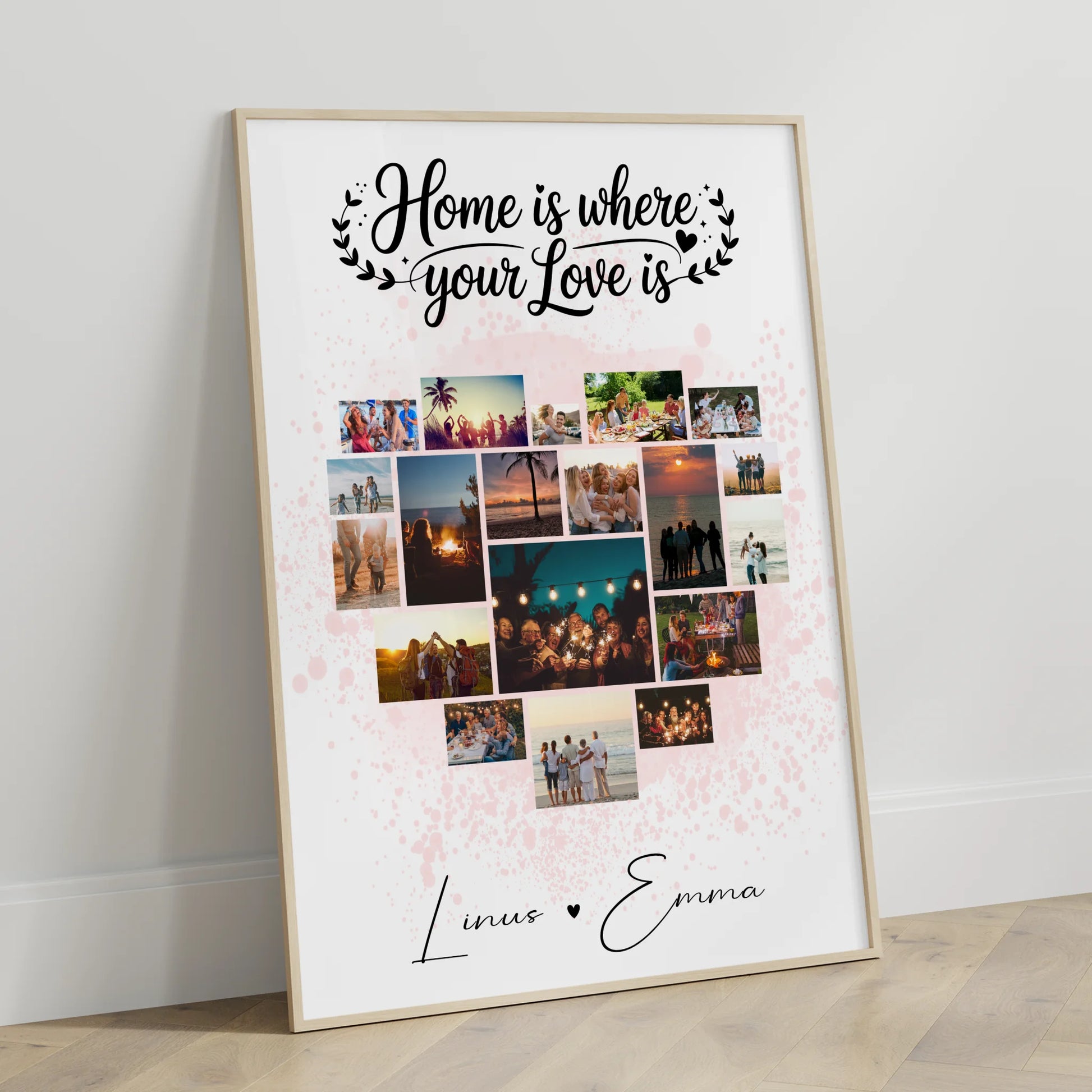 Geschenk Poster Liebe Fotocollage für Paare mit 19 Herz Fotos Home Is Where Your Love Is
