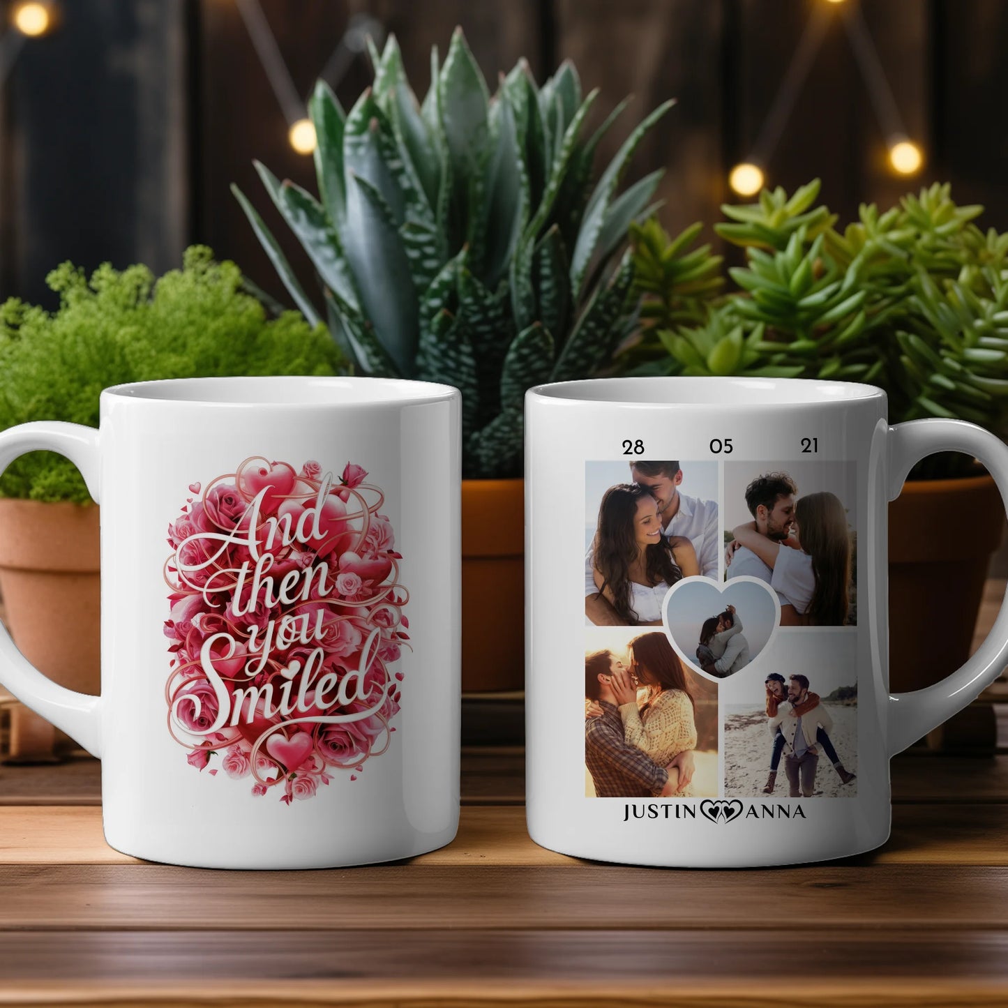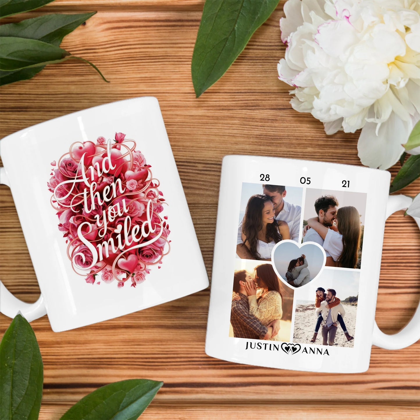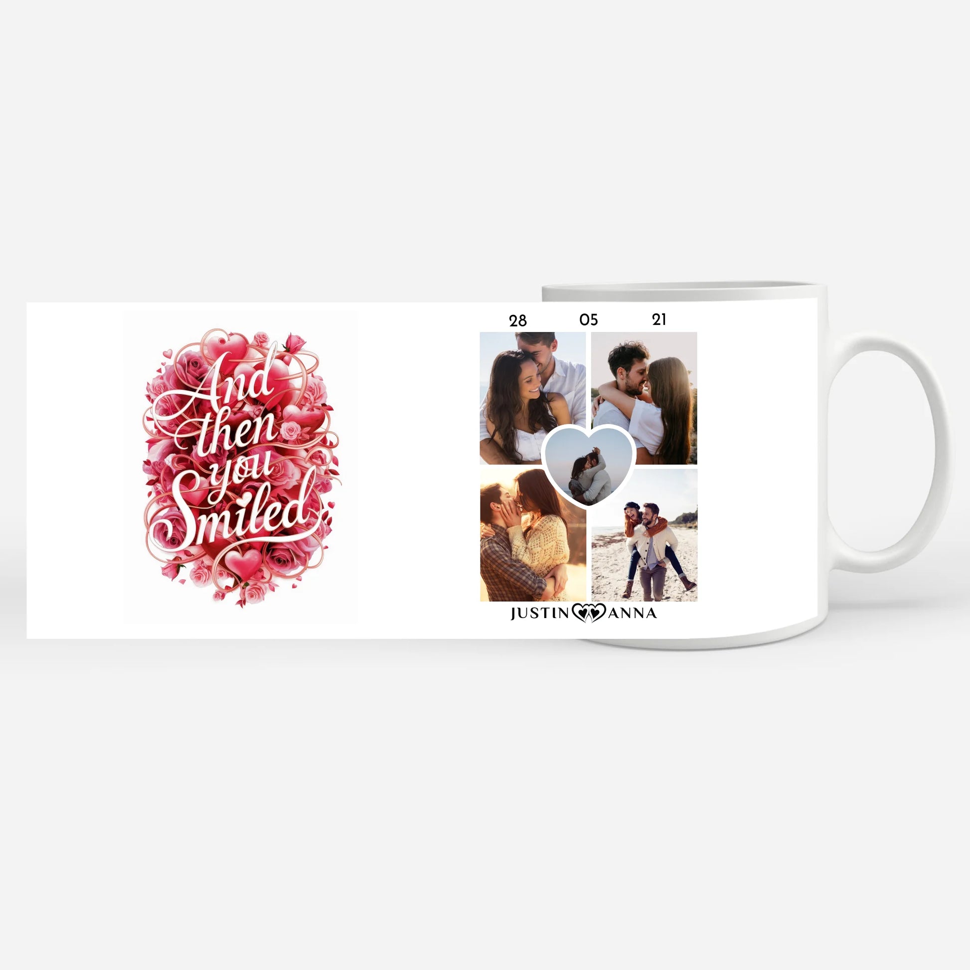 Du möchtest etwas einzigartiges verschenken? Dann ist Unsere Geschenk Tasse für Pärchen And Then You Smiled Herzranken ein schickes personalisiertes Geschenk.