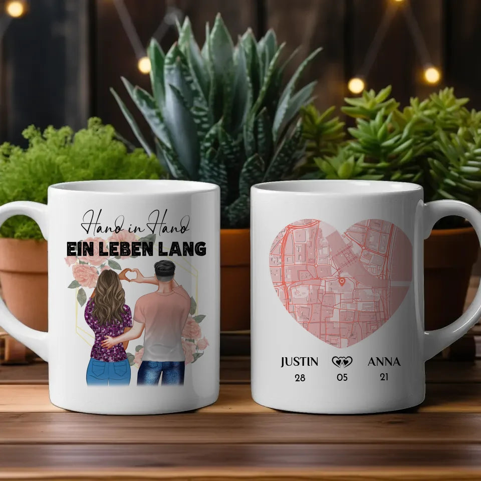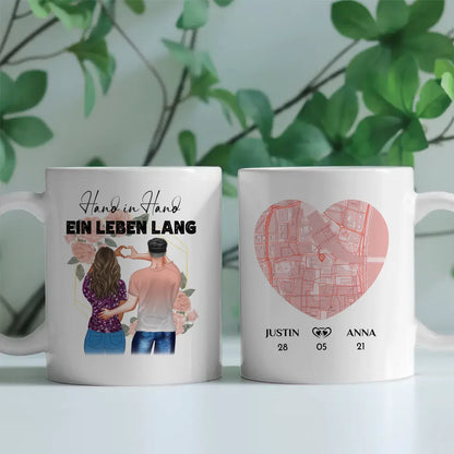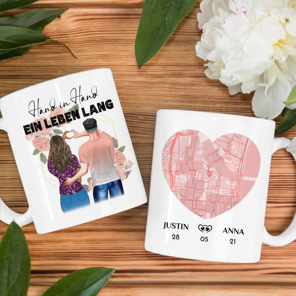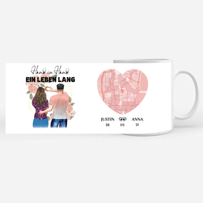 Geschenk Tasse Stadtkarte Hand in Hand Paar als Cliparts Personalisiert