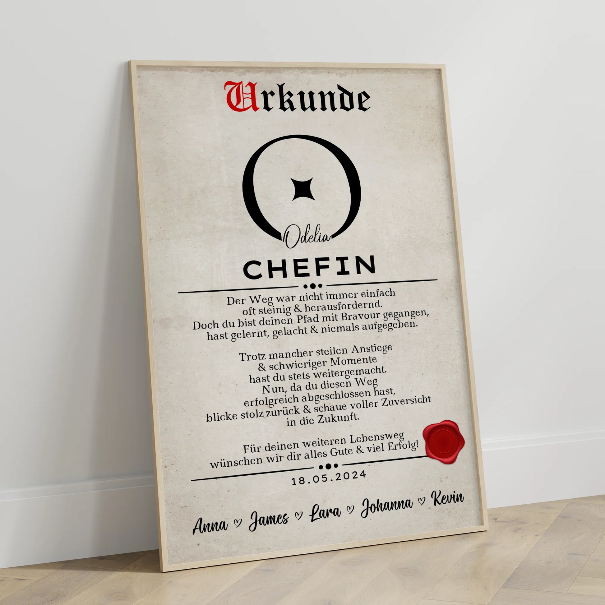 Geschenk Zum Abschluss Ausbildung Chefin Poster Urkunde – Das perfekte personalisierte Abschiedsgeschenk