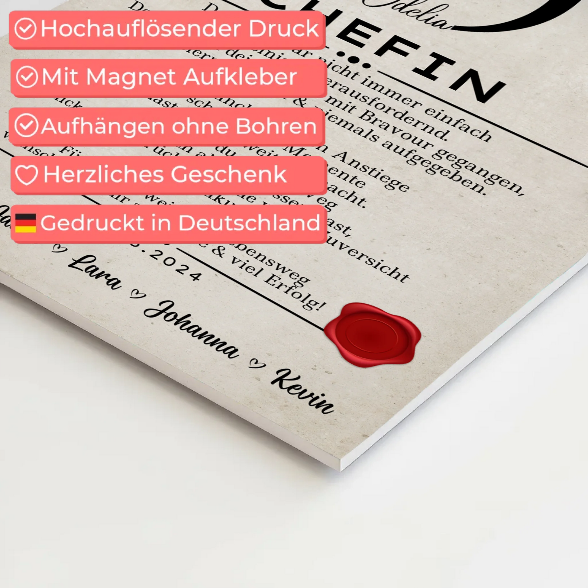 Geschenk Zum Abschluss Ausbildung Chefin Urkunde Fotoboard – Das perfekte personalisierte Abschiedsgeschenk