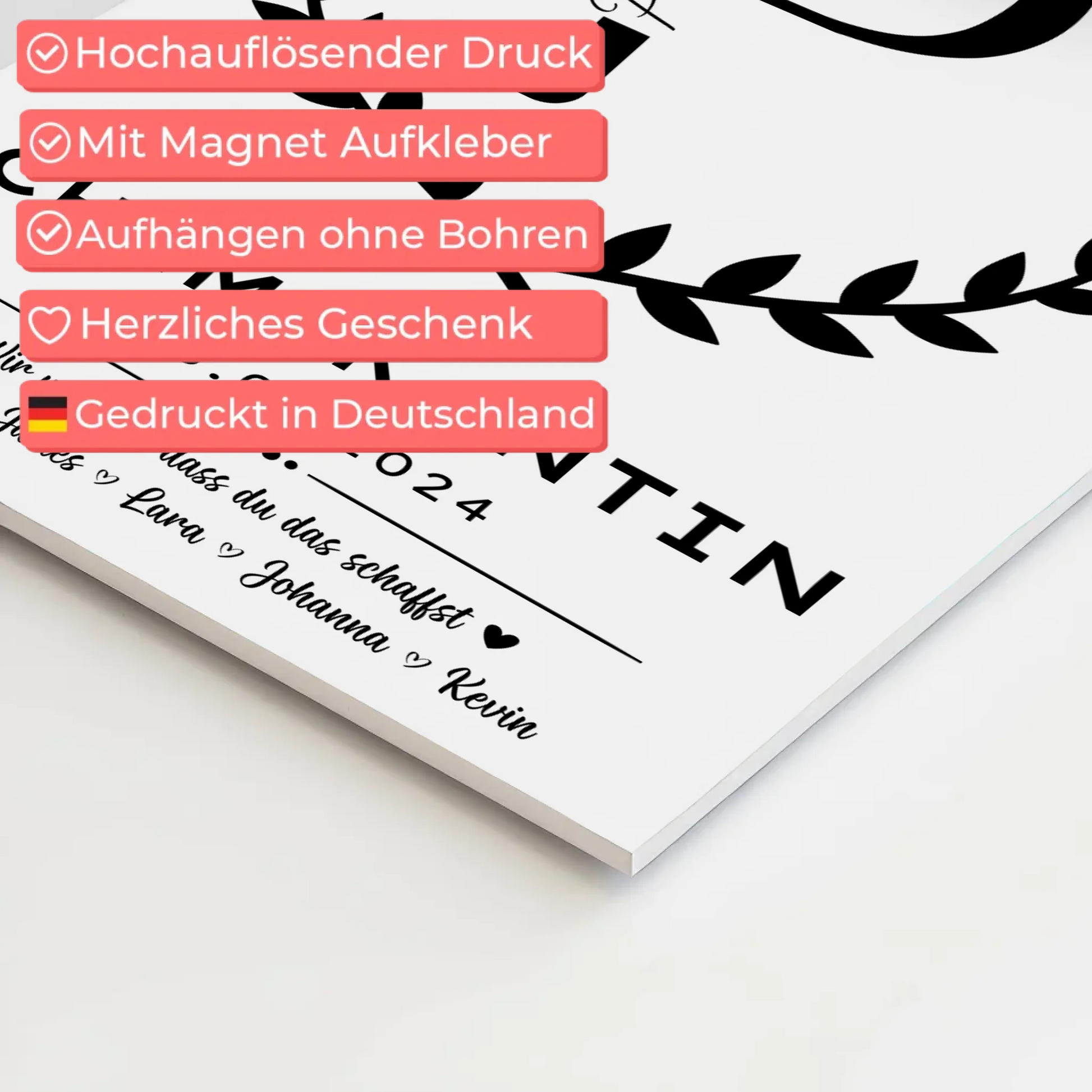 Du suchst nach einem einzigartigen Geschenk Zum Abschluss Ausbildung, das die erfolgreiche Chemikantin in deinem Leben würdigt? Unser personalisiertes Fotoboard ist die ideale Wahl, um den Ausbildungsabschluss unvergesslich zu machen. Dieses individuelle Geschenk zum Abschluss Ausbildung lässt sich ganz nach deinen Wünschen gestalten und ist perfekt als Ausbildungsabschluss Geschenk geeignet. Mit deinem Wunschtext, dem Initial Buchstaben und dem Datum kannst du das Fotoboard ganz persönlich anpassen. Es eignet sich hervorragend als Abschiedsgeschenk für eine Chemikantin, die ihre Ausbildung erfolgreich beendet hat. Überrasche sie mit diesem einzigartigen Geschenk Zum Abschluss Ausbildung und zeige deine Wertschätzung für ihre harte Arbeit und ihren Erfolg. Das hochwertige Fotoboard ist nicht nur ein dekoratives Element, sondern auch eine bleibende Erinnerung an diesen besonderen Meilenstein in ihrer Karriere. Mach den Abschied unvergesslich mit einem individuellen Ausbildungsabschluss Geschenk, das sie noch lange schätzen wird.