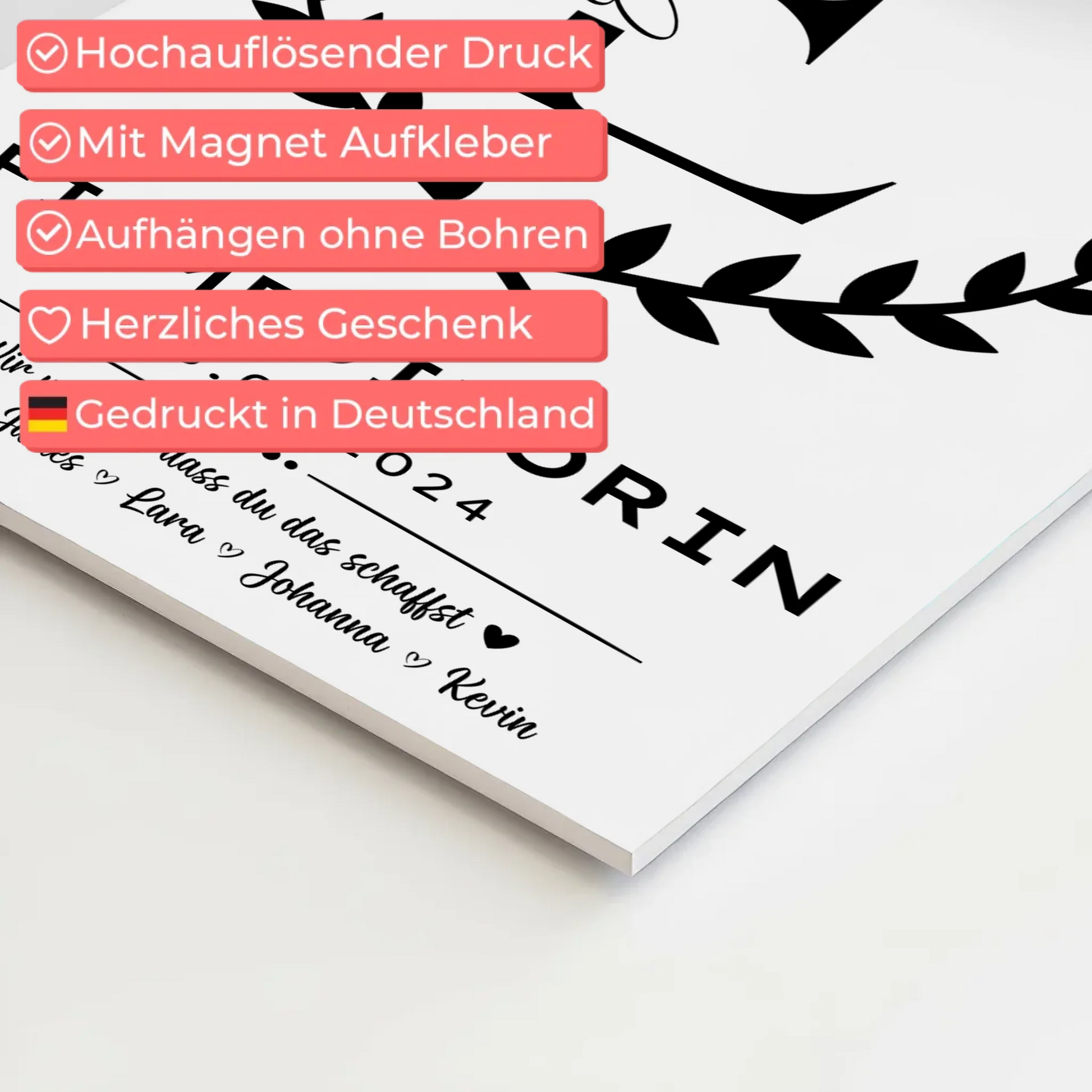 Du suchst ein einzigartiges und persönliches Geschenk Zum Abschluss Ausbildung, das die Leistung deiner Freundin oder Kollegin würdigt? Unser Geschenk Zum Abschluss Ausbildung Filmeditorin Fotoboard Magnet Wandbild ist die ideale Wahl, um den Ausbildungsabschluss unvergesslich zu machen. Dieses individuell gestaltbare Fotoboard Magnet Wandbild lässt sich ganz nach deinen Wünschen personalisieren: Du kannst den Initial Buchstaben, das Datum sowie einen Wunschtext hinzufügen, um das Geschenk noch persönlicher zu gestalten. Es eignet sich perfekt als Ausbildungsabschluss Geschenk für eine Filmeditorin, die stolz auf ihren Erfolg ist. Das kreative Fotoboard Magnet Wandbild ist nicht nur eine schöne Dekoration, sondern auch ein bedeutungsvolles Andenken an den gemeinsamen Weg und den erfolgreichen Abschluss. Ob als Abschiedsgeschenk oder als Erinnerung an einen besonderen Meilenstein – dieses personalisierte Präsent wird garantiert für Freude sorgen. Überrasche deine Kollegin oder Freundin mit diesem einzigartigen Geschenk zum Abschluss Ausbildung und zeige ihr, wie sehr du ihre Leistung schätzt. Es ist das ideale Ausbildungsabschluss Geschenk, um den Moment festzuhalten und dauerhaft in Erinnerung zu behalten. Mit unserem individuell gestaltbaren Angebot machst du aus einem einfachen Präsent ein echtes Highlight – perfekt geeignet als Geschenk zum Abschluss Ausbildung für eine talentierte Filmeditorin.