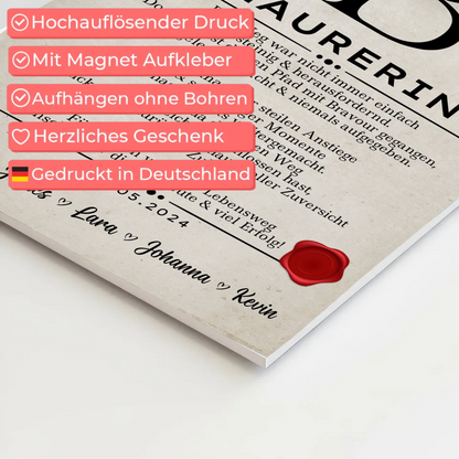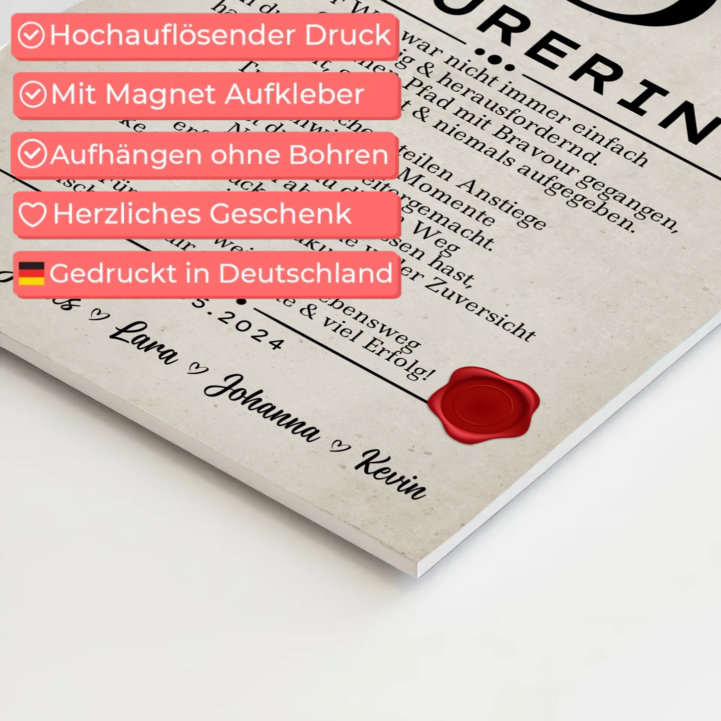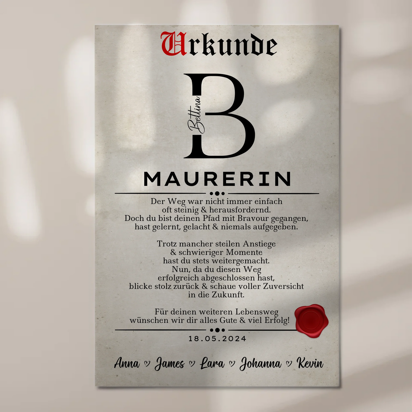 Geschenk Zum Abschluss Ausbildung Maurerin Urkunde Fotoboard