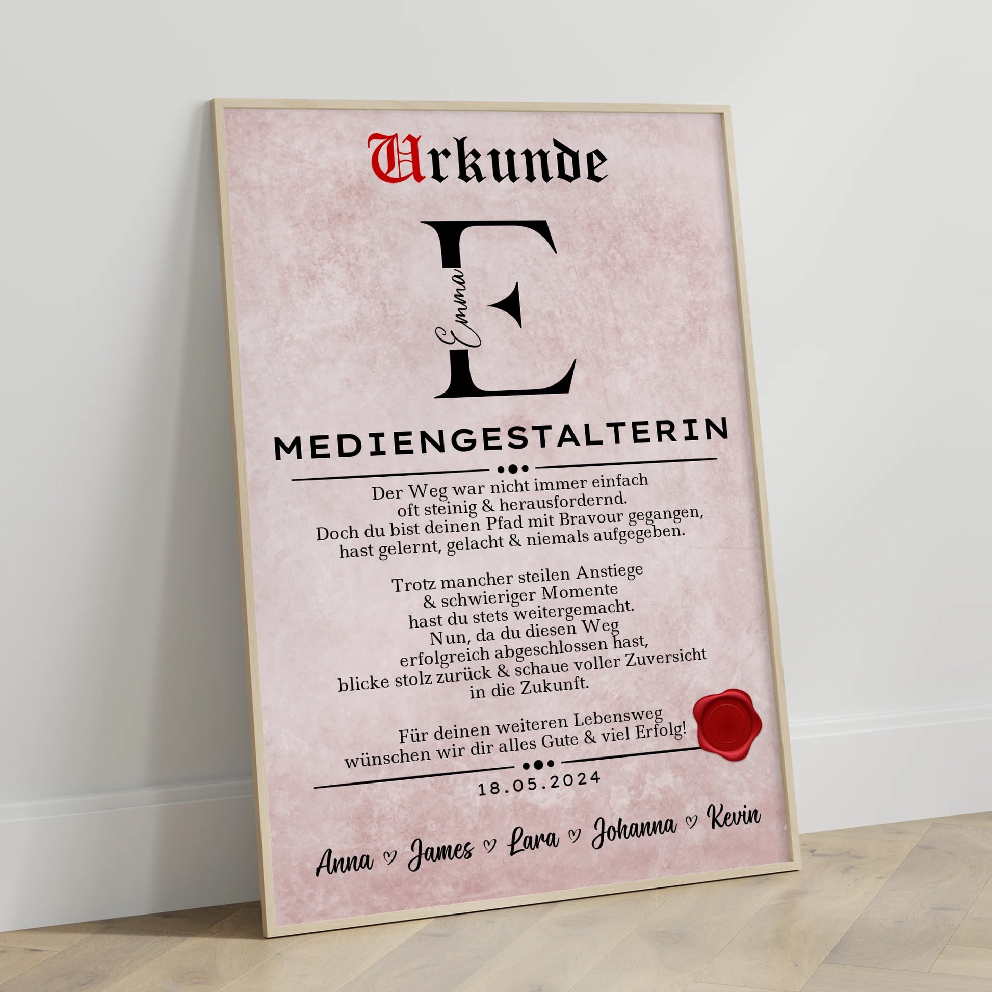 Geschenk Zum Abschluss Ausbildung Mediengestalterin Poster Urkunde Personalisiert
