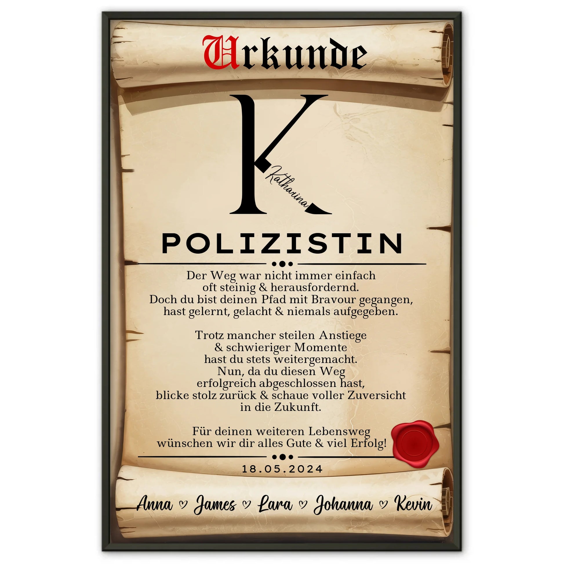 Geschenk Zum Abschluss Ausbildung Polizistin Poster Urkunde