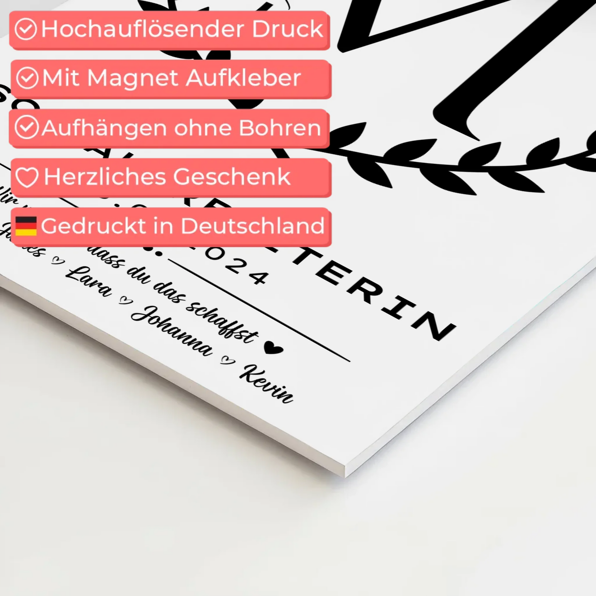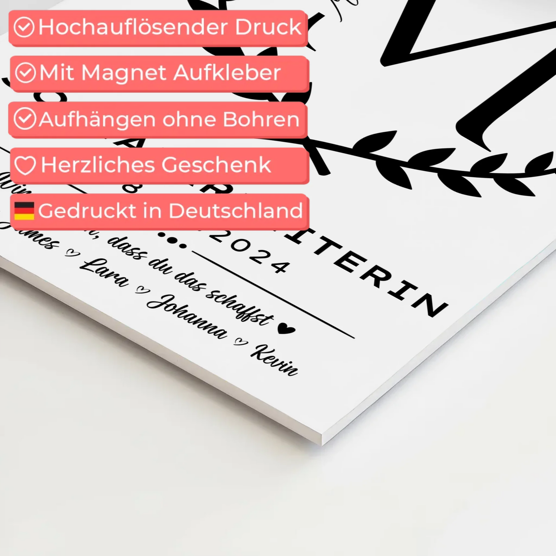 Du suchst ein einzigartiges und persönliches Geschenk Zum Abschluss Ausbildung, das die Leistung einer Sozialarbeiterin würdigt? Unser Geschenk Zum Abschluss Ausbildung Sozialarbeiterin Magnet Fotoboard ist die ideale Wahl, um den erfolgreichen Ausbildungsabschluss zu feiern. Dieses individuell gestaltbare Magnet Fotoboard bietet dir die Möglichkeit, Initial Buchstabe, Datum und Wunschtext nach deinen Vorstellungen zu personalisieren. Damit wird dein Geschenk zu einem besonderen Erinnerungsstück, das immer wieder Freude bereitet. Das Ausbildungsabschluss Geschenk eignet sich perfekt als Abschiedsgeschenk oder als Anerkennung für die harte Arbeit während der Ausbildung. Mit diesem Geschenk Zum Abschluss Ausbildung kannst du deine Wertschätzung auf eine kreative und persönliche Weise ausdrücken. Das Magnet Fotoboard ist nicht nur dekorativ, sondern auch praktisch – es lässt sich leicht an magnetischen Flächen befestigen und bietet Platz für Fotos, Notizen oder kleine Erinnerungen. Überrasche deine Freundin, Kollegin oder dich selbst mit diesem einzigartigen Geschenk Abschluss Ausbildung und mache den Moment unvergesslich. Dieses individuelle Ausbildungsabschluss Geschenk ist eine tolle Idee für alle, die einen besonderen Wegbegleiter suchen, um den Erfolg ihrer Sozialarbeiterin zu feiern.
