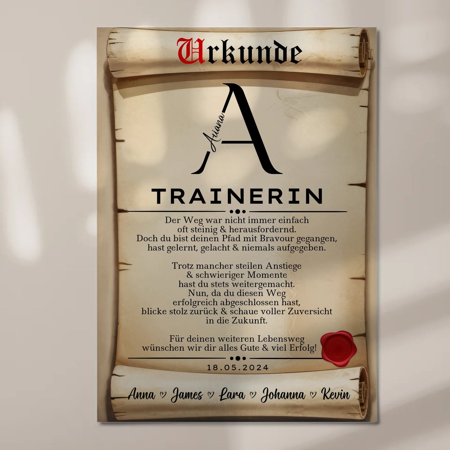 Geschenk Zum Abschluss Ausbildung Trainerin Urkunde Magnet Fotoboard – Das perfekte personalisierte Abschiedsgeschenk