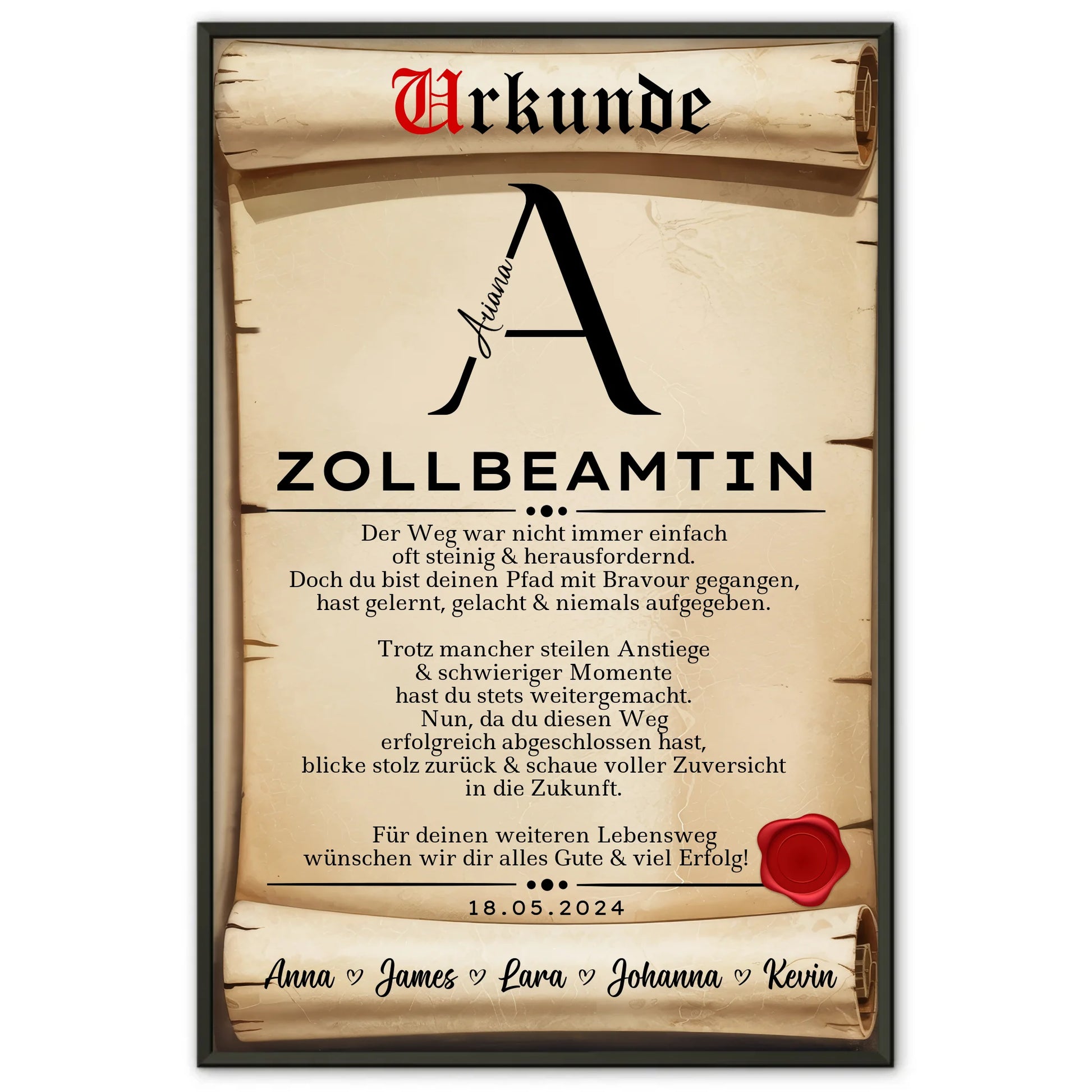 Geschenk Zum Abschluss Ausbildung Zollbeamtin Poster Urkunde