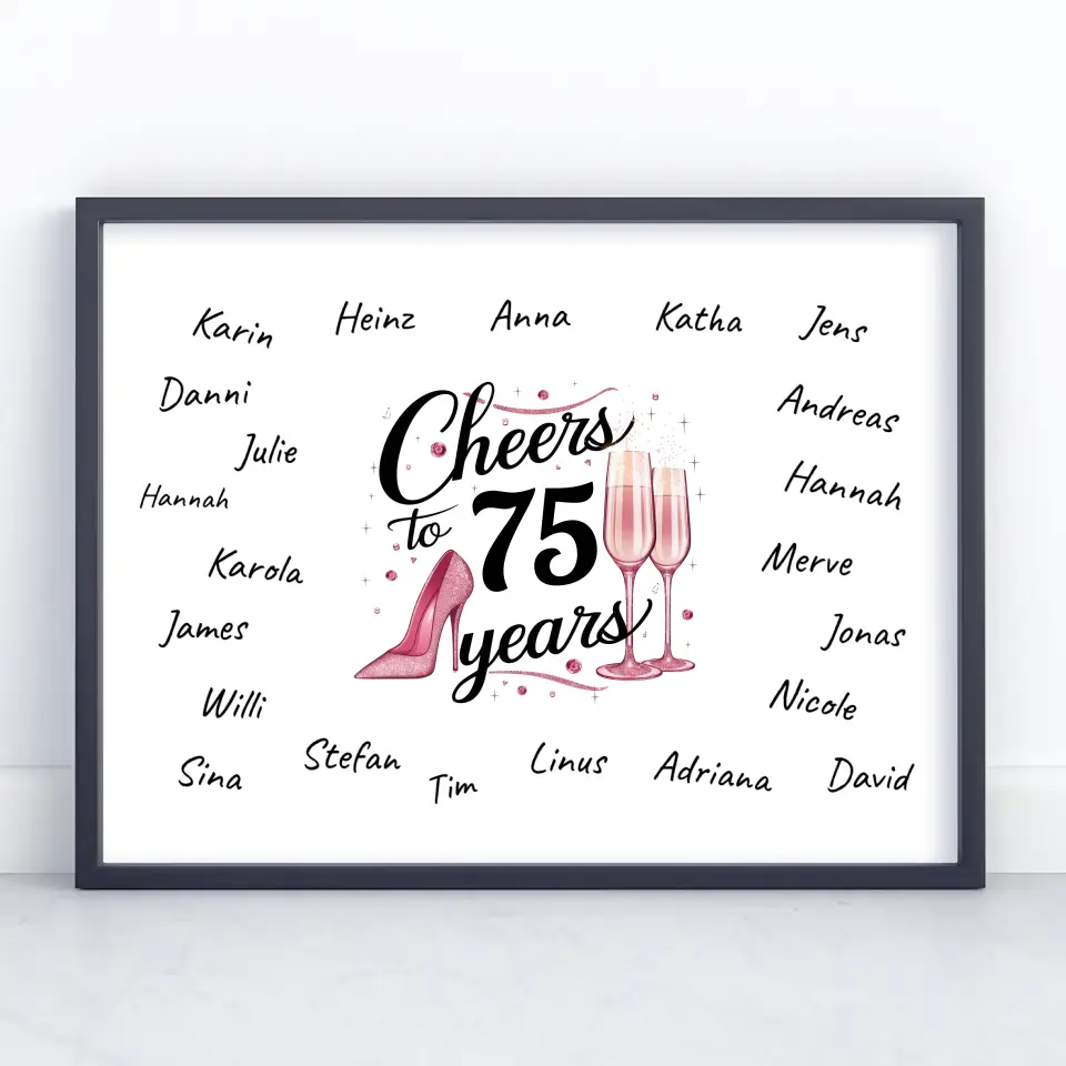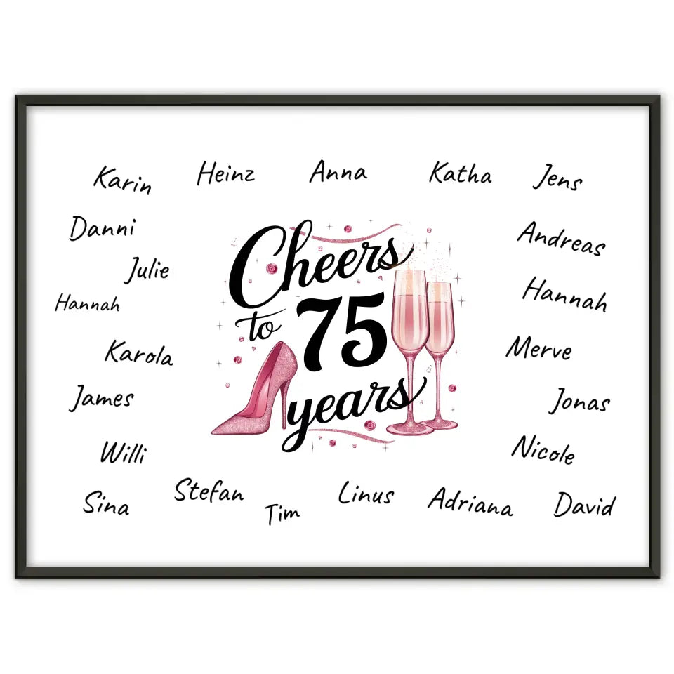 Geschenkposter individuell GĂ€stebuch 75 Geburtstag mit Unterschriften