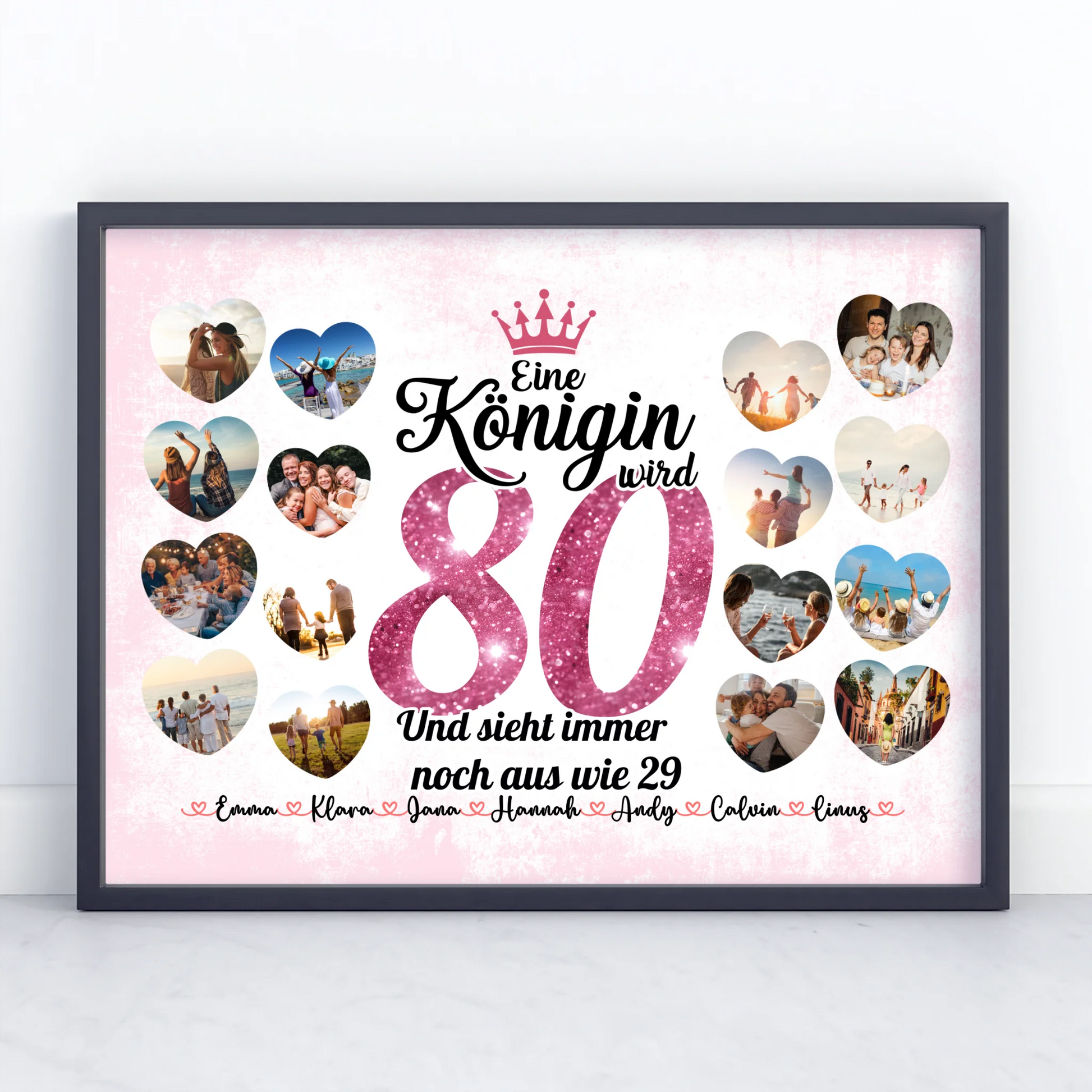 Unser Geschenkposter individuell Königin wird 80 Geburtstag mit Herz Fotos