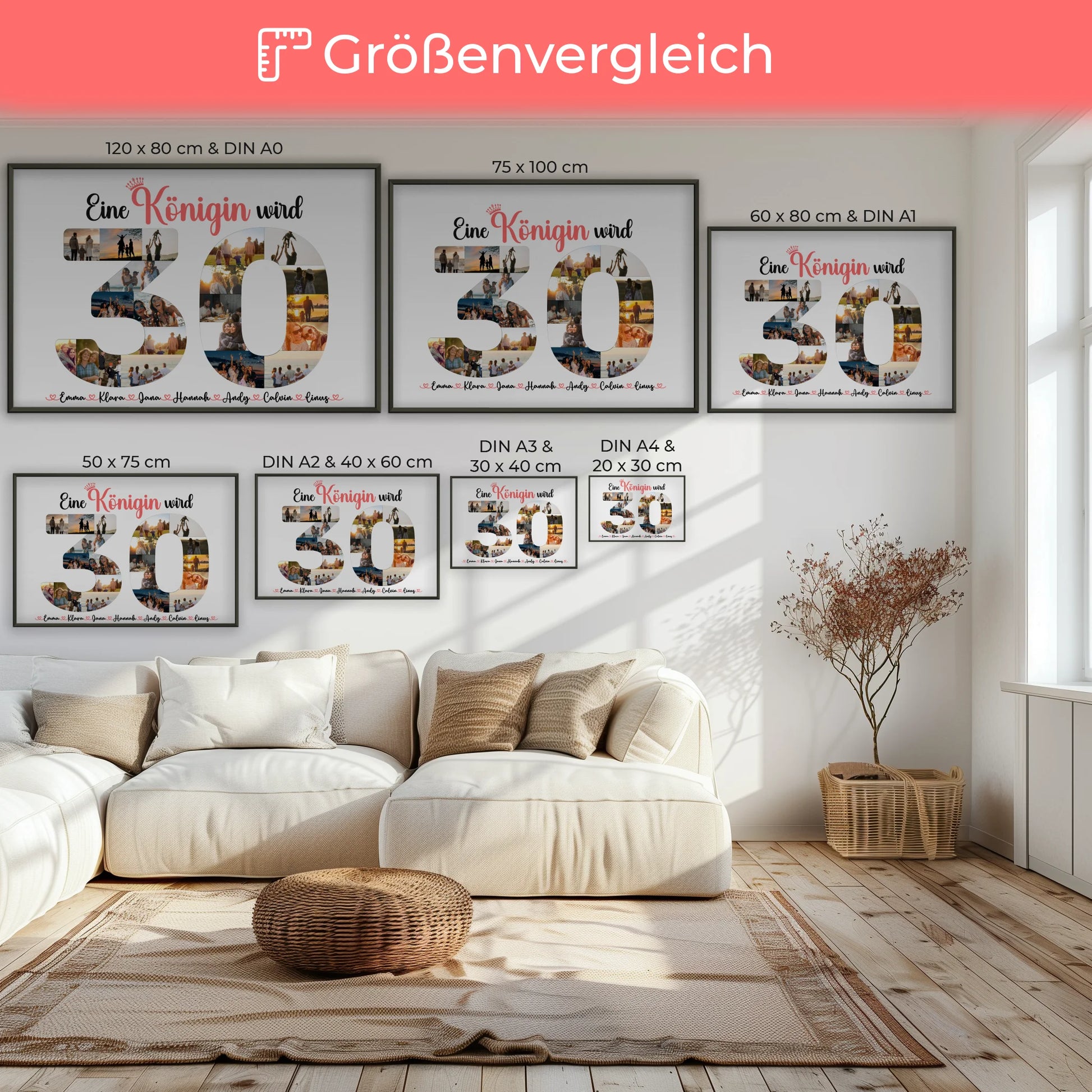 Unser Geschenkposter personalisiert Königin wird 30 Geburtstag mit Fotos in Zahlen