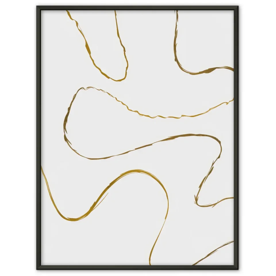 Entdecken Sie unser elegantes minimalistisches Poster mit goldenen Wellenlinien Design, das perfekt in jede moderne Einrichtung passt. Dieses Poster gehört zur Kategorie der abstrakten Kunst und besticht durch seinen überwiegend weißen Hintergrund, der die subtilen goldfarbenen Linien in den Vordergrund stellt. Die geschwungenen, wellenförmigen Linien variieren in Dicke und Krümmung und erzeugen ein faszinierendes Gefühl von Bewegung und Fließfähigkeit. Jedes Detail dieses Posters spricht für Eleganz und Raffinesse, was es zu einem idealen Schmuckstück für Wohnzimmer, Schlafzimmer oder Büroräume macht.