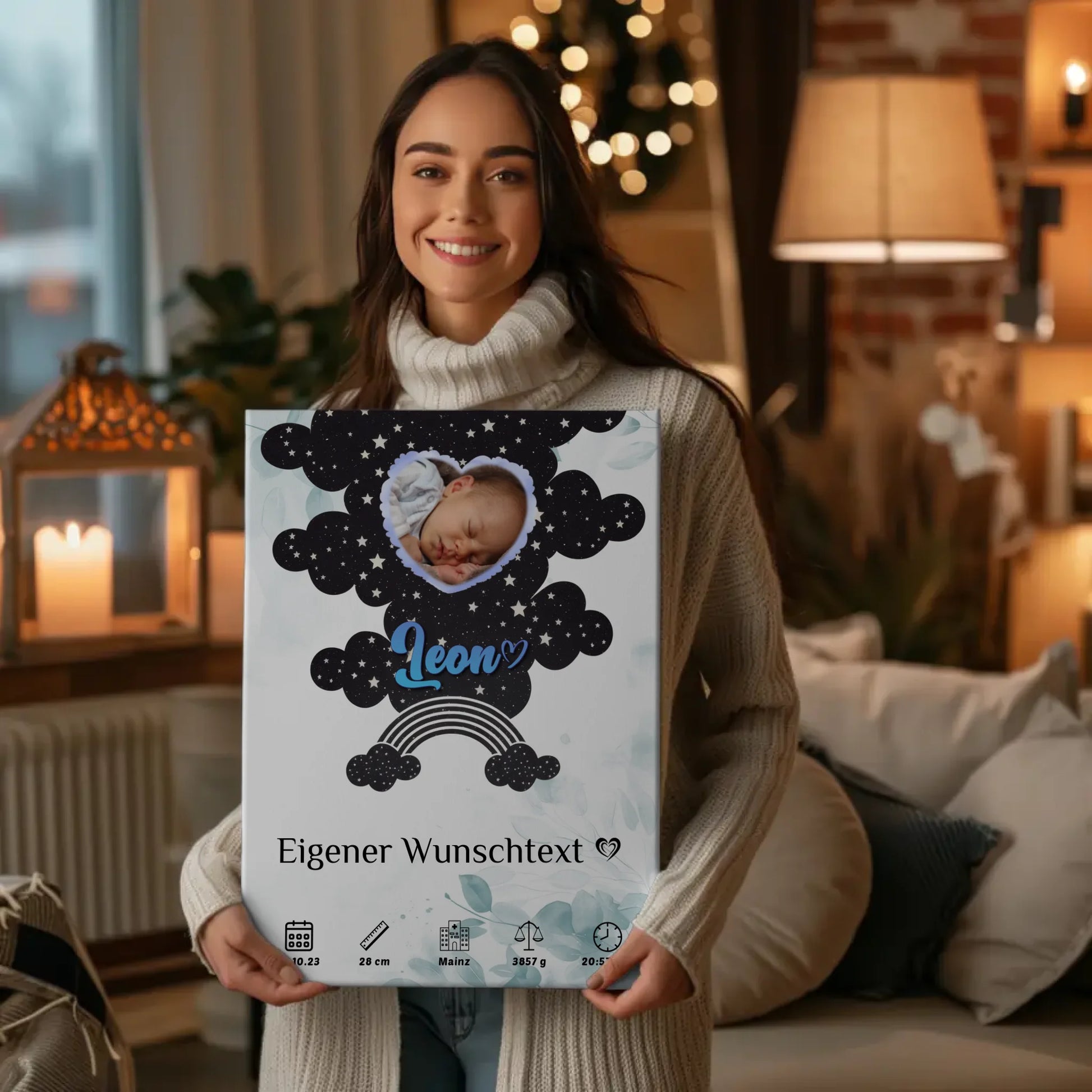 Mach diesen Tag unvergesslich mit einer einzigartigen Leinwand zur Geburt, die nicht nur schön aussieht, sondern auch alle wichtigen Geburtsdaten in einem kuscheligen Design vereint. Verschenke Freude und Liebe mit dieser einzigartigen Geburts Leinwand, die zukünftige Erinnerungen schafft. Sie ist das perfekte Plakat zur Geburt und eine wunderbare Geschenkidee für Freunde und Familie!