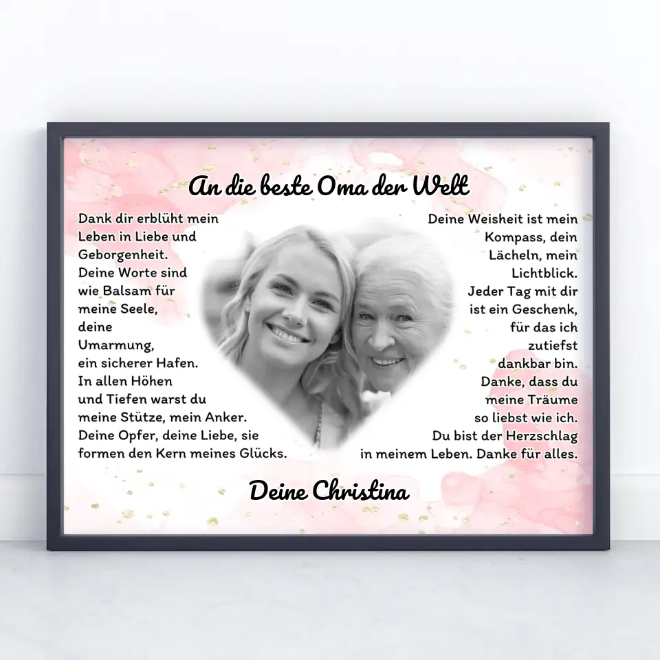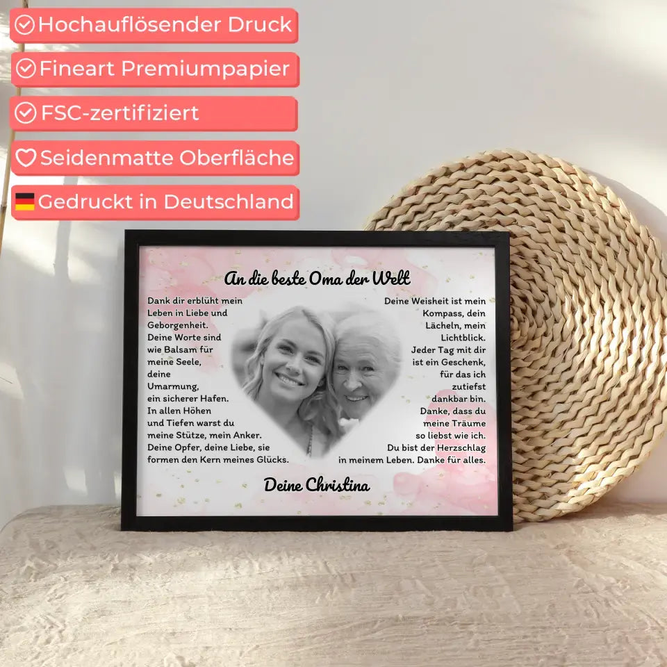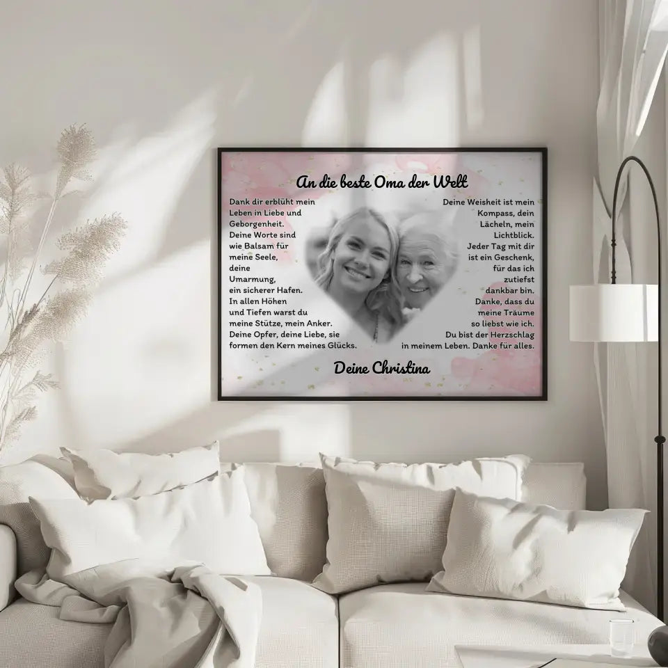 Herz Foto Poster An die beste Oma der Welt Individuell
