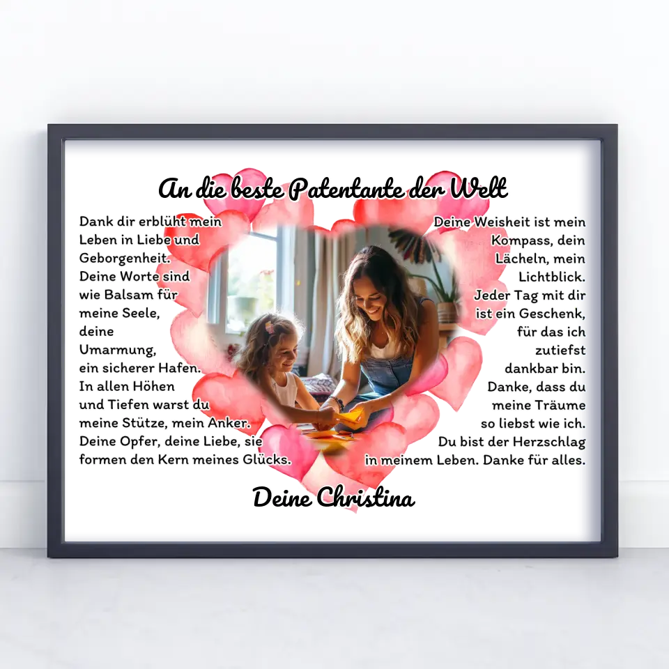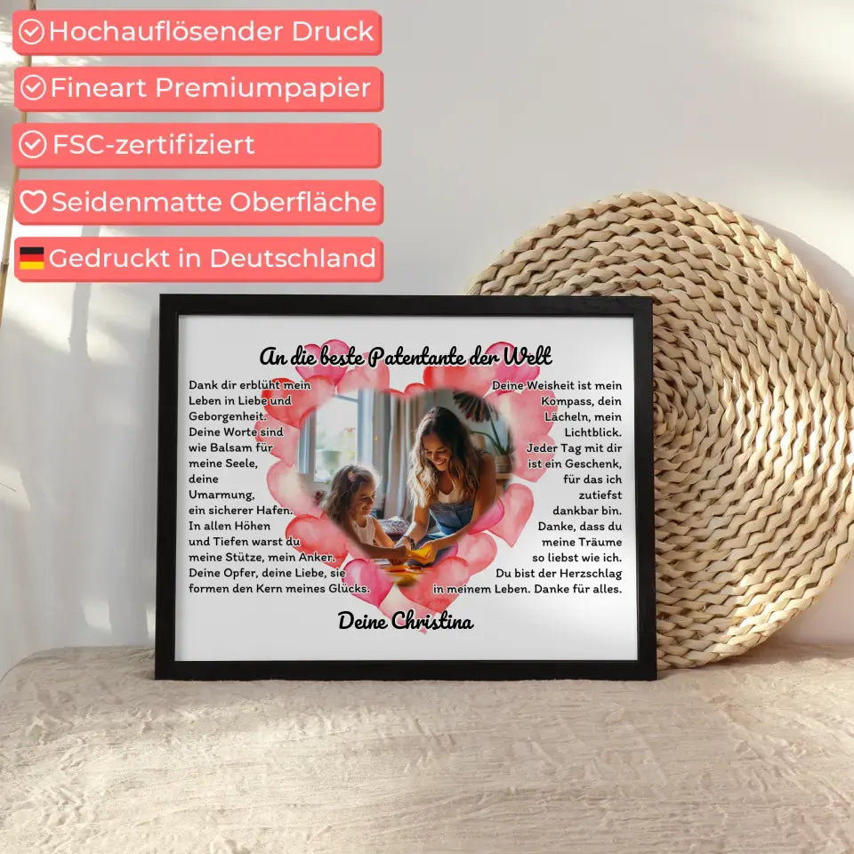 Herz Foto Poster An die beste Patentante der Welt Individuell