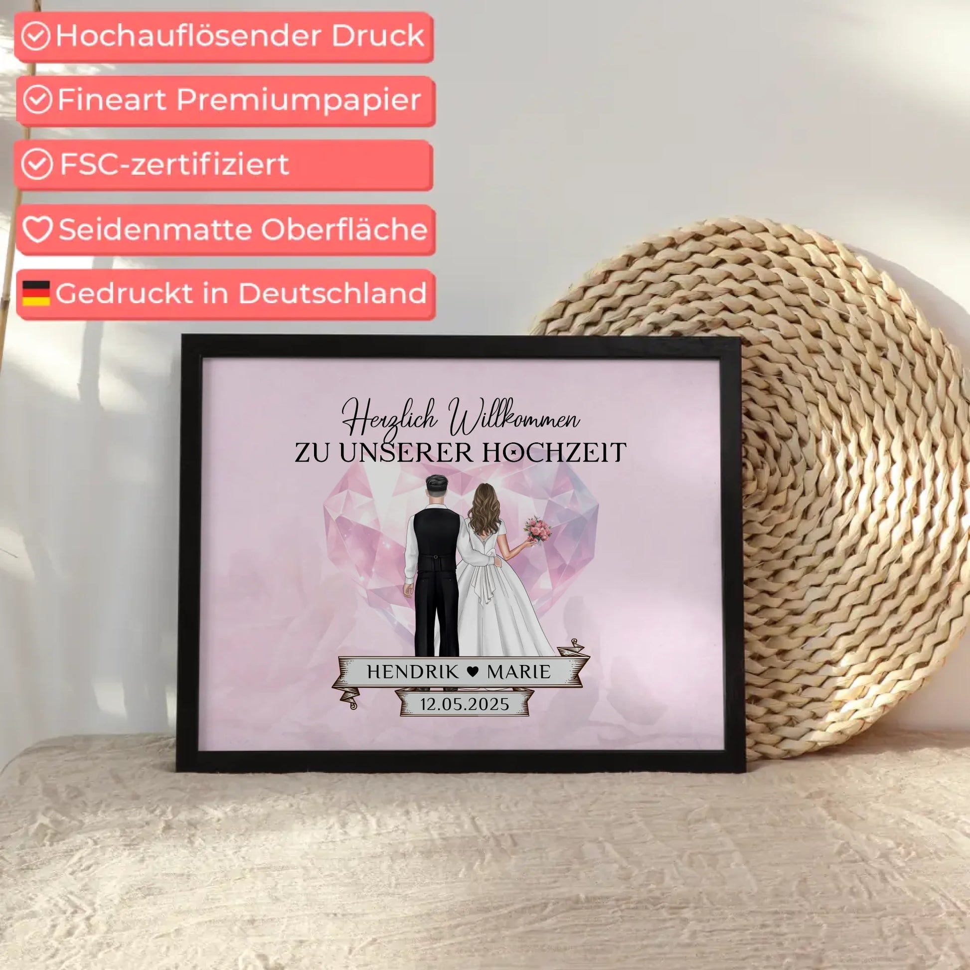 Hochzeit Willkommensschild Diamant Herz Poster personalisiert