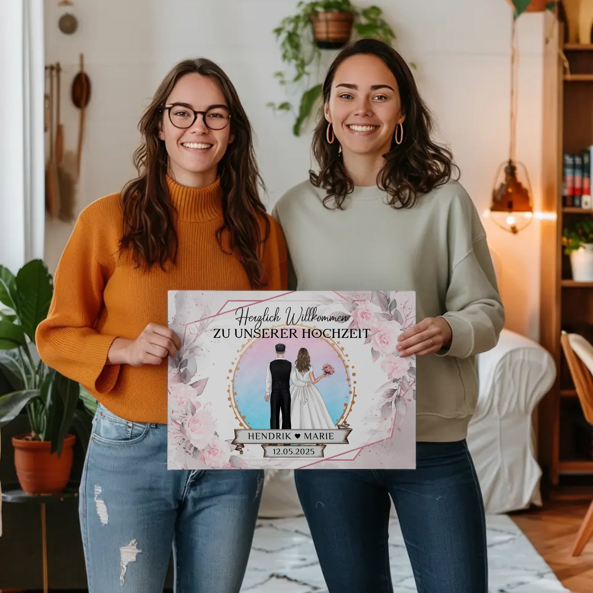 Hochzeit Willkommensschild Floral Leinwand personalisiert