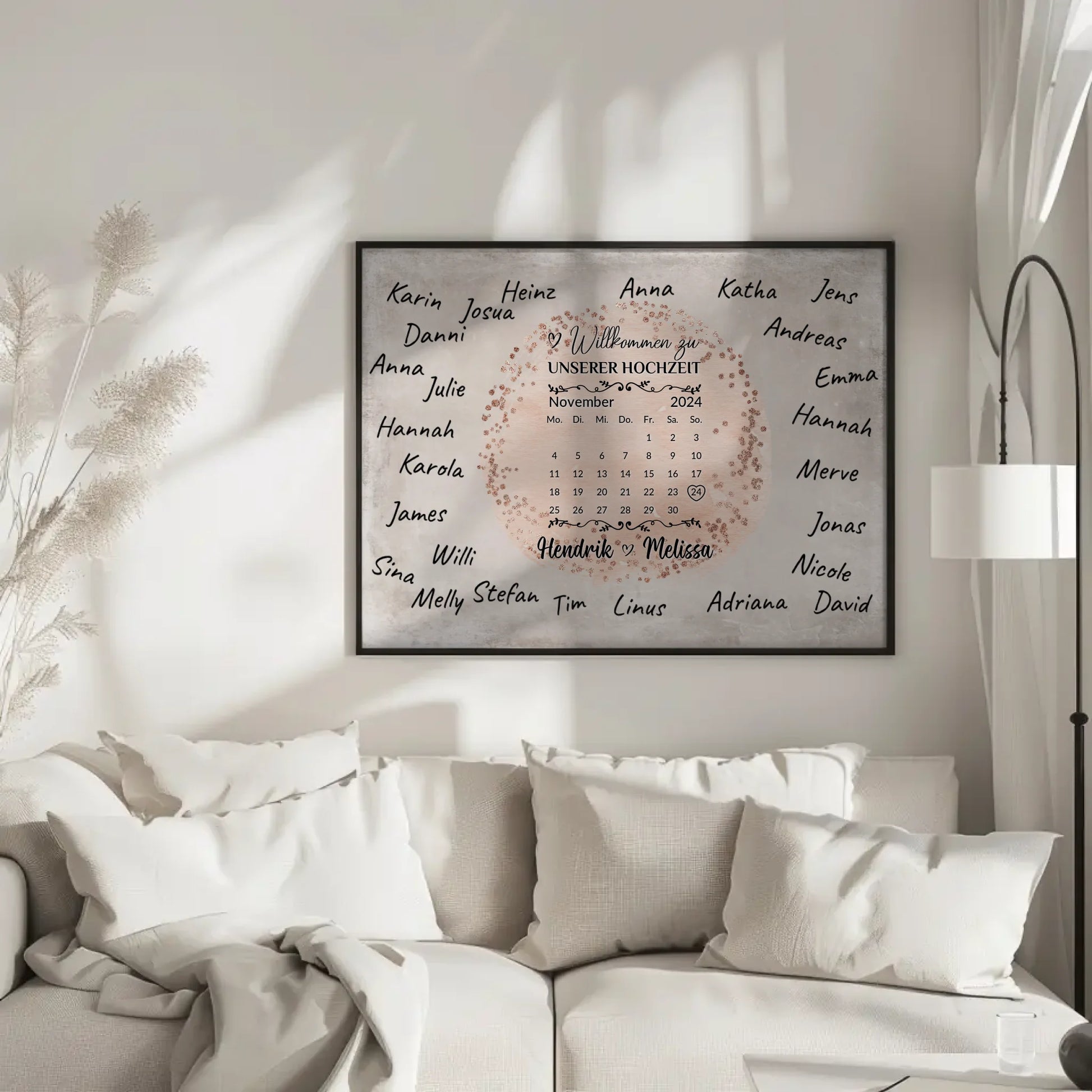 Ob als Willkommensschild Hochzeit, als Willkommensposter Hochzeit oder als Poster Hochzeit Herzlich Willkommen, dieses personalisierte Geschenk wird ein echter Blickfang an eurem Hochzeitstag sein. Mit den Eigenschaften, dass du es selbst gestalten kannst, wird es zur perfekten Erinnerung an diesen besonderen Anlass.