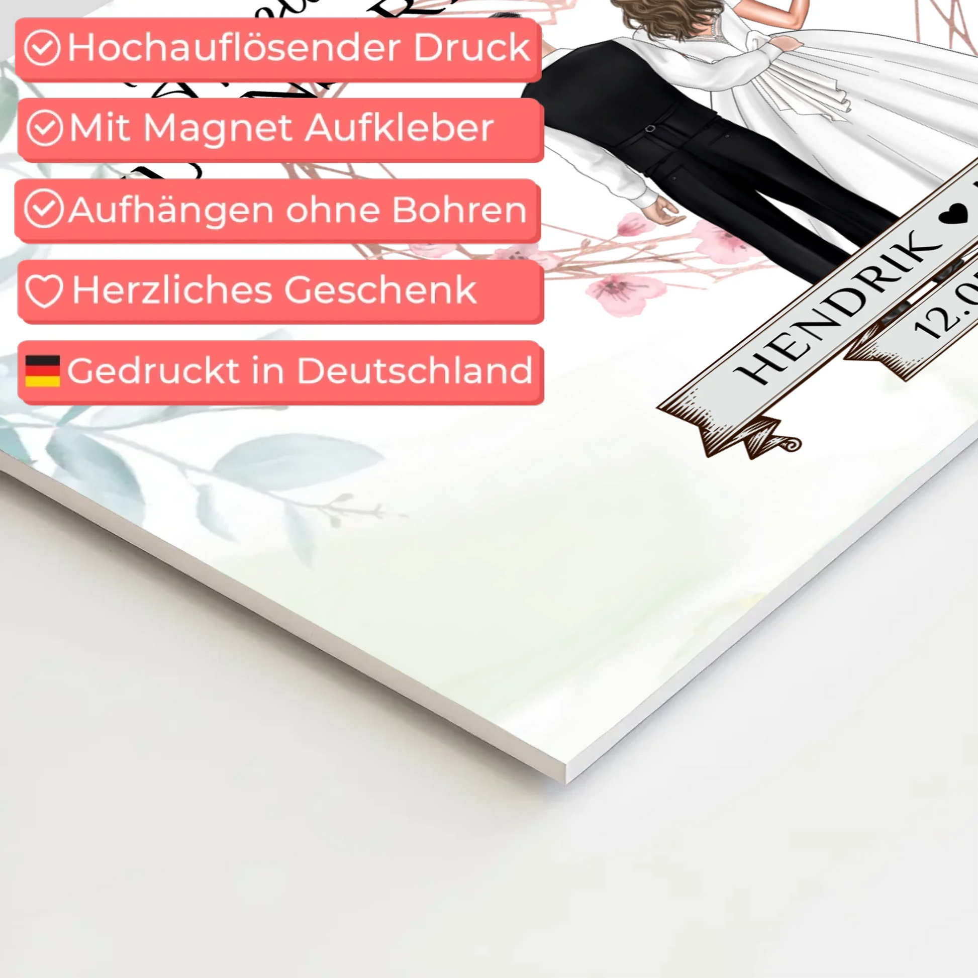 Verleihe deiner Hochzeit eine persönliche Note mit unserem Hochzeit Willkommensschild Herz Rose Fotoboard Design. Dieses einzigartige Willkommensschild zur Hochzeit ist nicht nur ein Hingucker, sondern auch eine herzliche Begrüßung für deine Gäste. Mit der Möglichkeit, Namen und Datum der Hochzeit sowie ein individuelles Hintergrundbild zu personalisieren, wird dieses Schild zu einem unvergesslichen Highlight deines besonderen Tages.