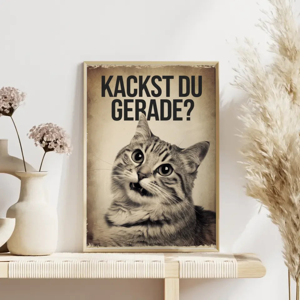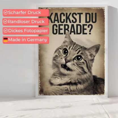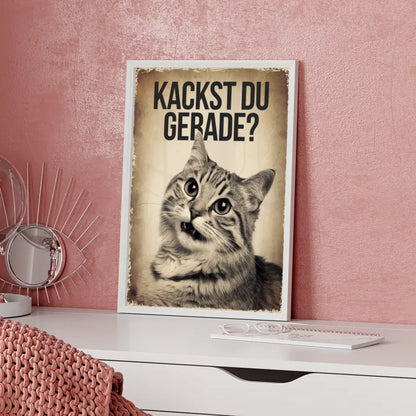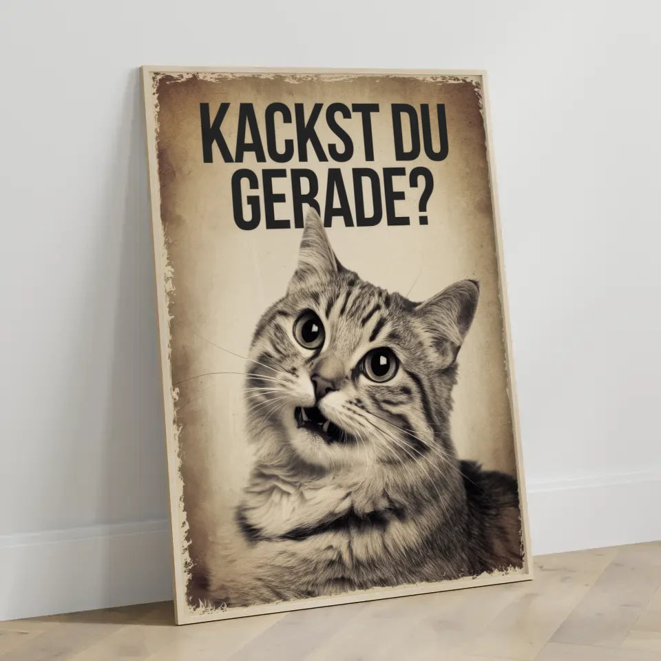Humorvolles Poster Katze mit Frage - Kackst du gerade im Vintage Stil